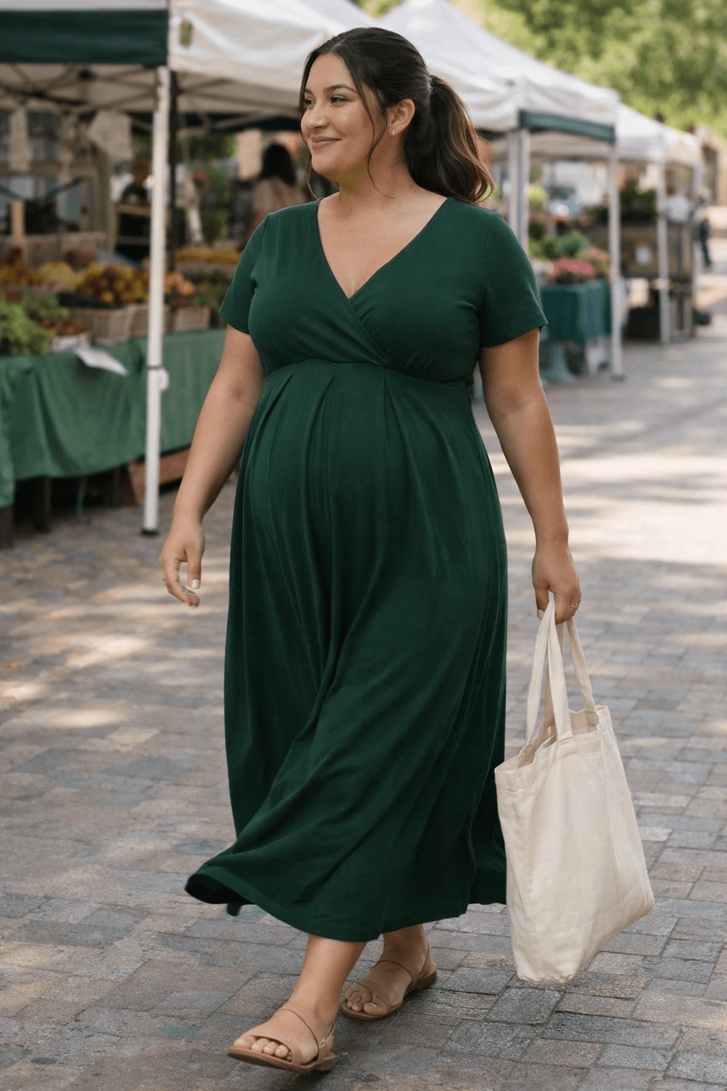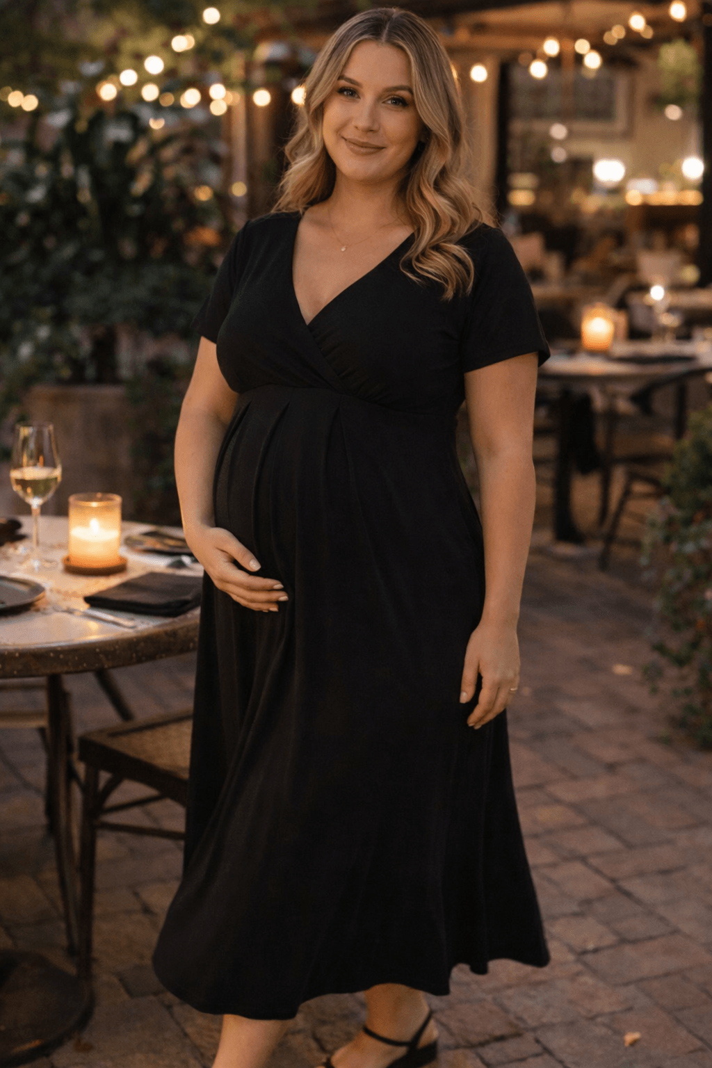 “I wore the black one for a dinner date at 30 weeks and felt so put-together without sacrificing comfort. The empire waist gives shape without squeezing, and the fabric drapes so smoothly over my bump. I was able to sit through a long dinner and still feel comfortable. It looks elegant in photos but honestly feels like loungewear.”
