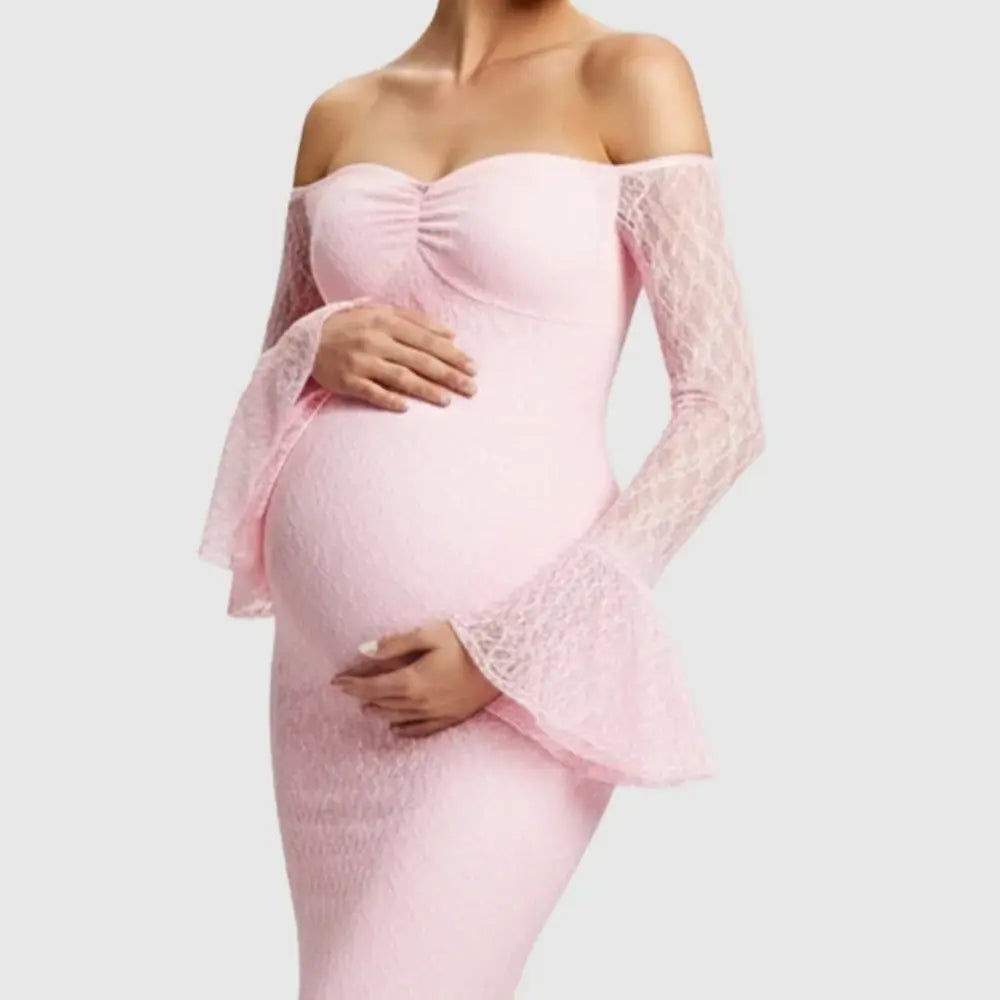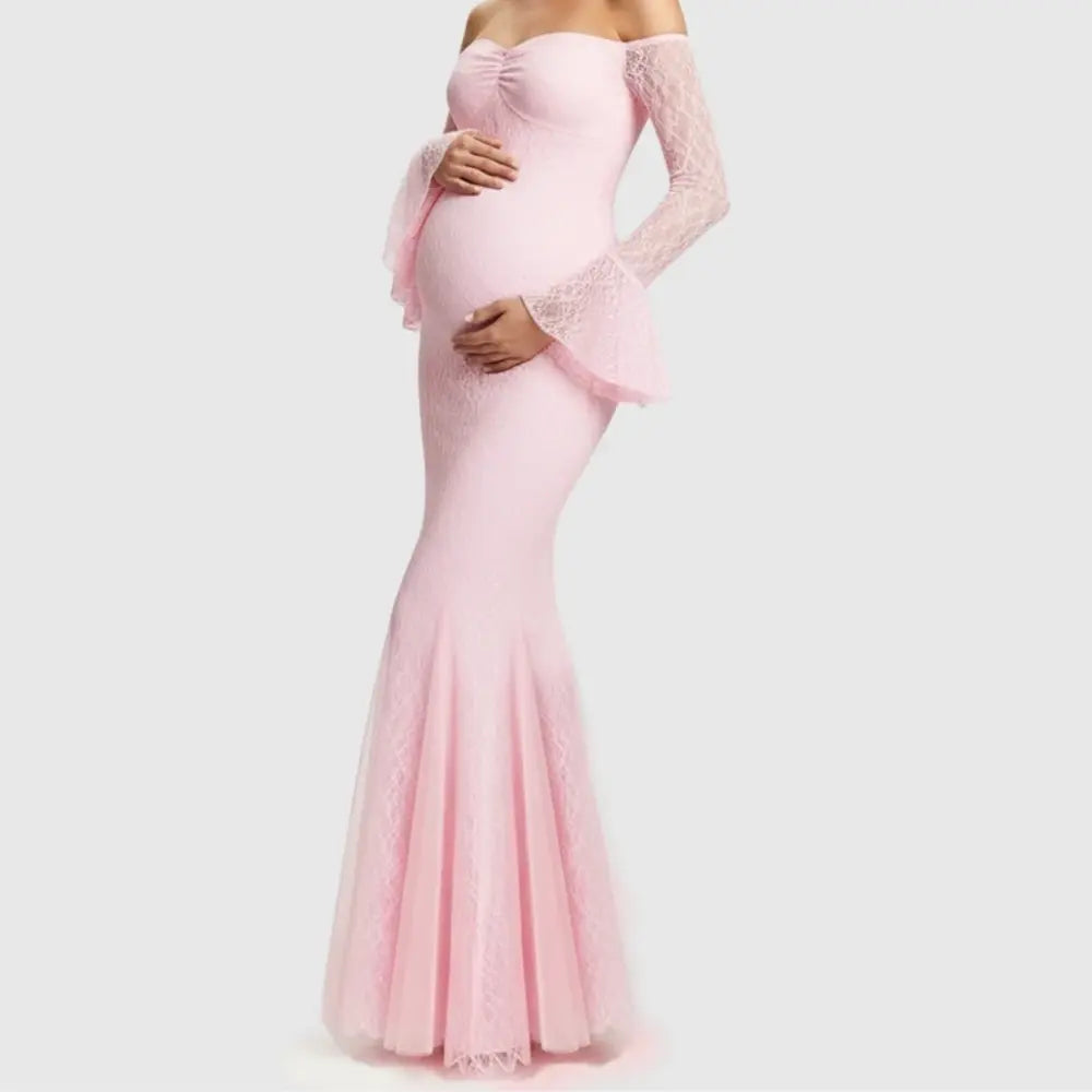 Off-Shoulder Lace Mermaid Maternity Maxi Dress