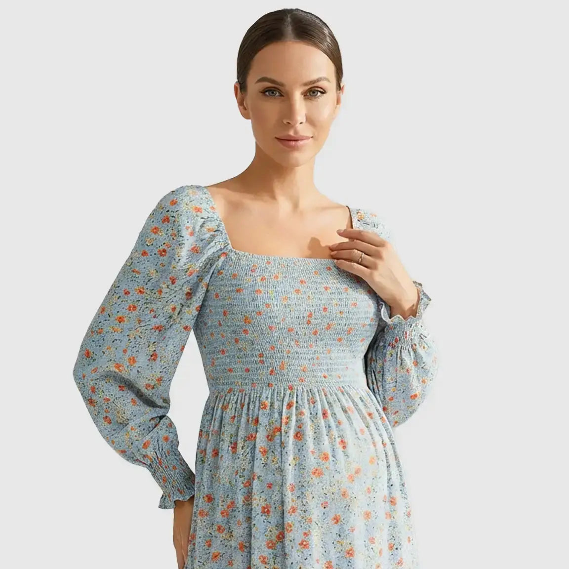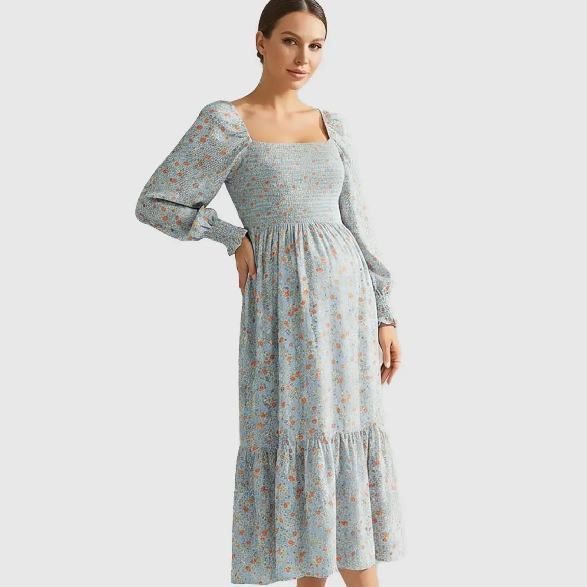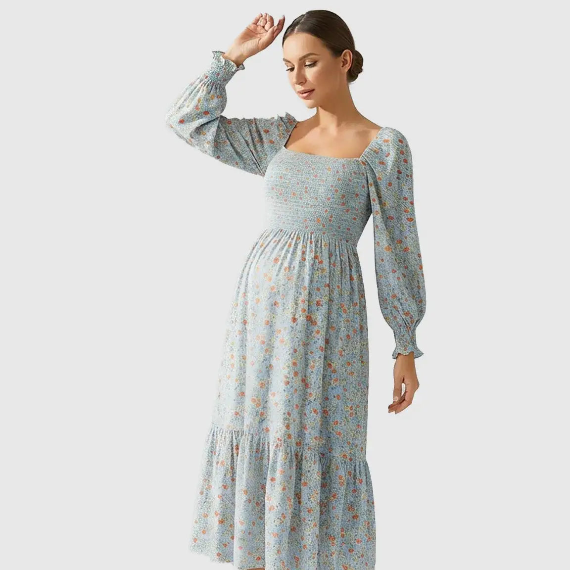 Smocked Bodice Floral Maternity Midi Dress