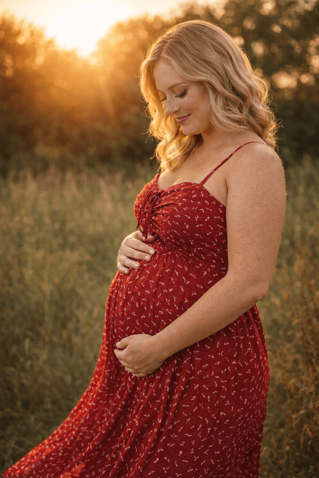 “Wore this at 29 weeks for our maternity photos and I’m so glad I did. The chiffon is light and airy, and it moved beautifully in the breeze. It fit my bump perfectly without feeling tight, and I felt so comfortable the whole time. It made the moment feel even more special.”
