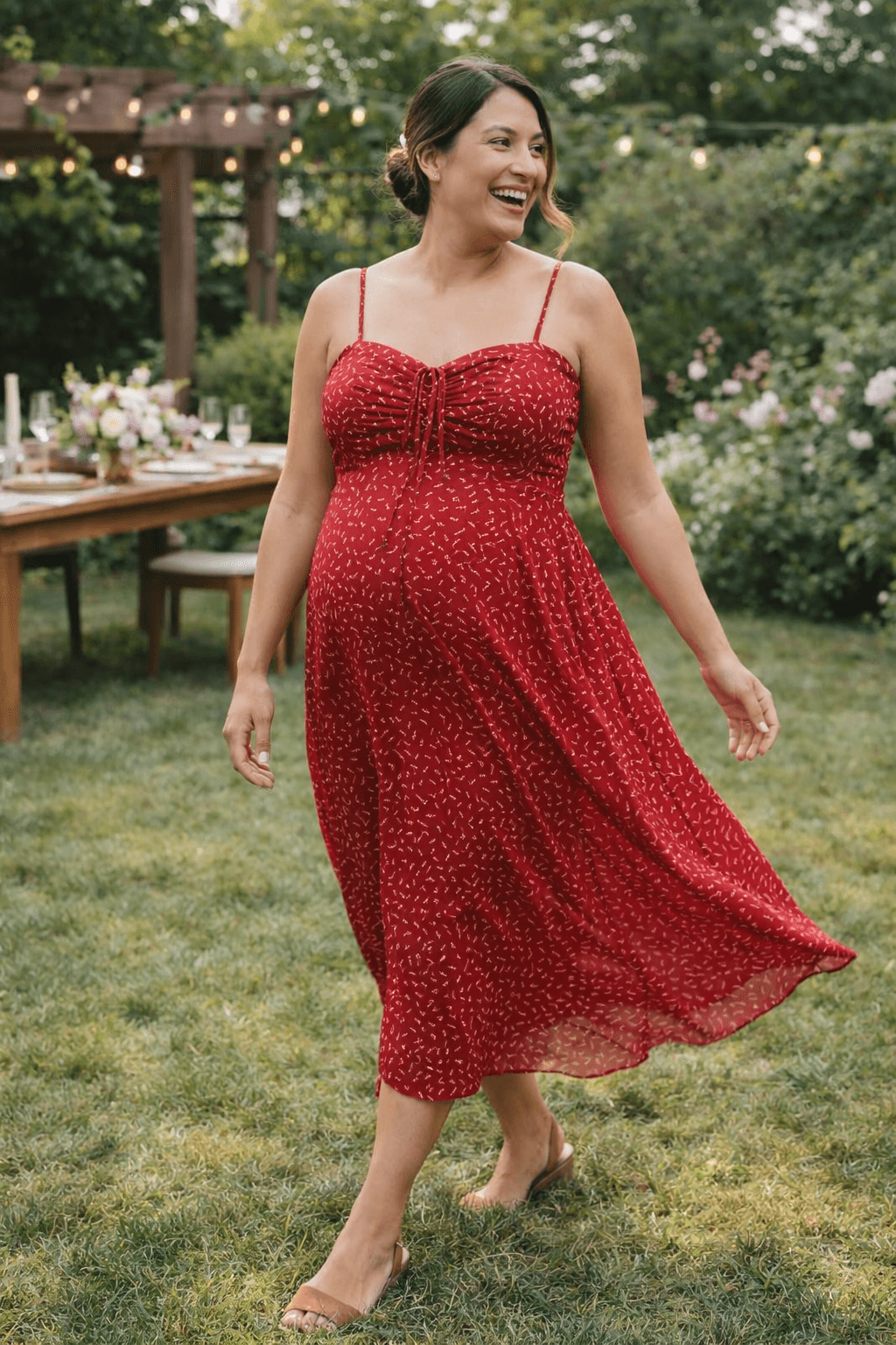 “I wore this to a garden birthday party at 30 weeks and got so many compliments. It feels breezy and doesn’t feel tight anywhere. I was nervous about looking bulky, but this dress actually made me feel really pretty.”