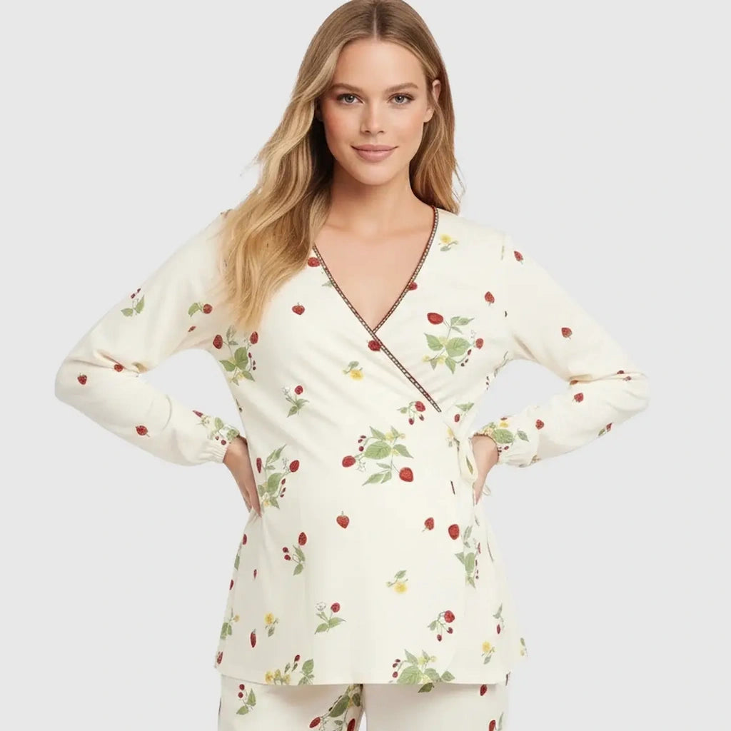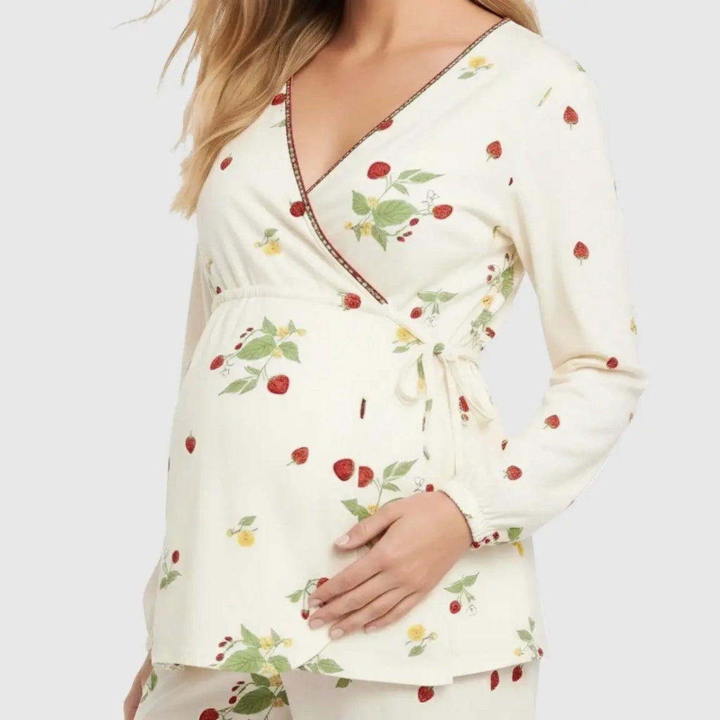 Floral Wrap Kimono Cotton Maternity Pajama Set