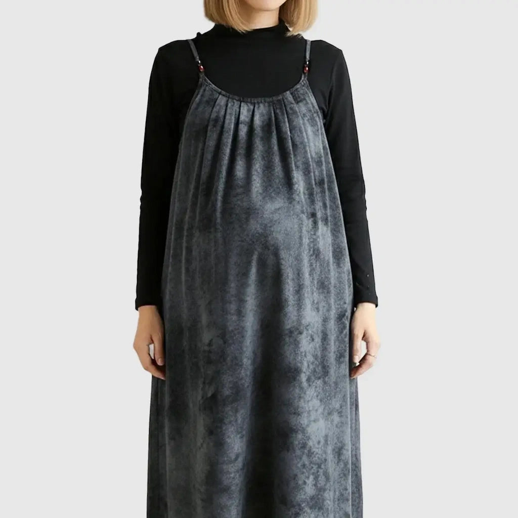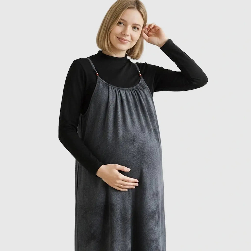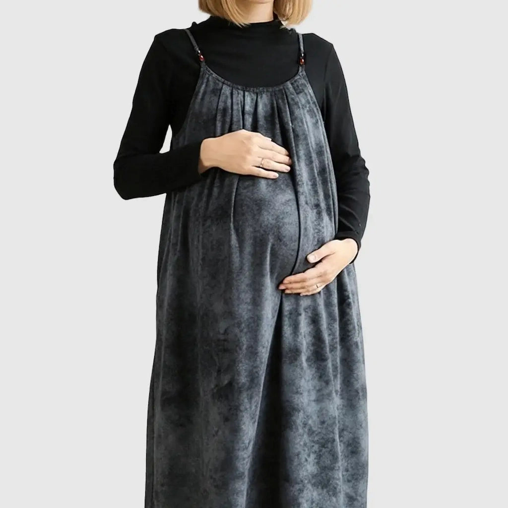Adjustable Strap Vintage-Style Maternity Suspender Midi Dress