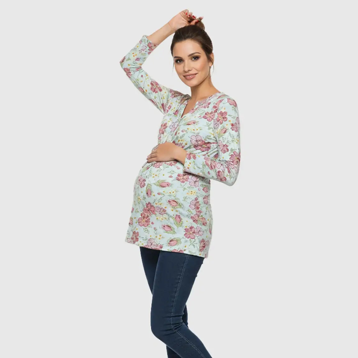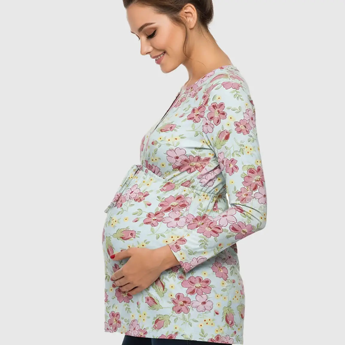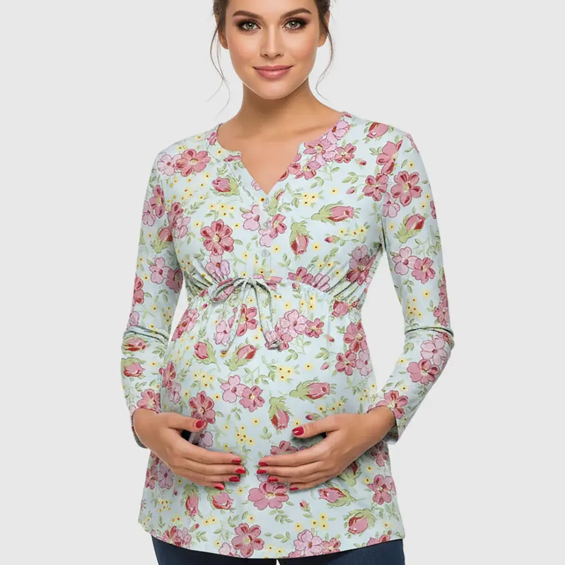 Meet your everyday maternity essential, soft, breathable, and designed to move with you through every trimester. With a flattering V-neckline, long sleeves, and an adjustable waist tie, this floral top gives you the perfect blend of comfort and style. Feel confident, supported, and beautifully dressed at every stage of pregnancy.