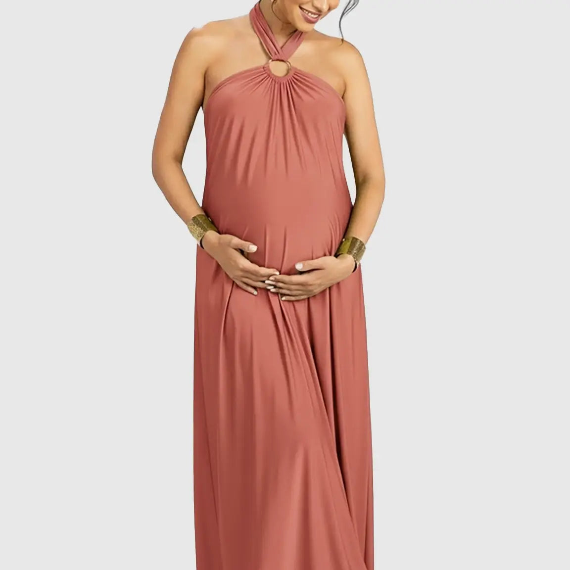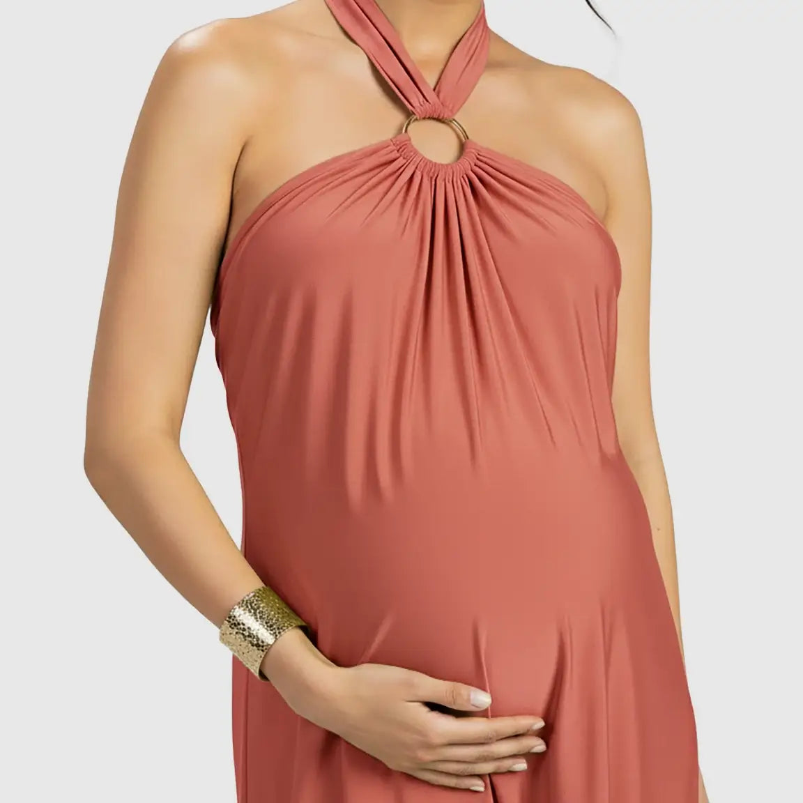 Backless Halter Neck Chiffon Maternity Maxi Dress