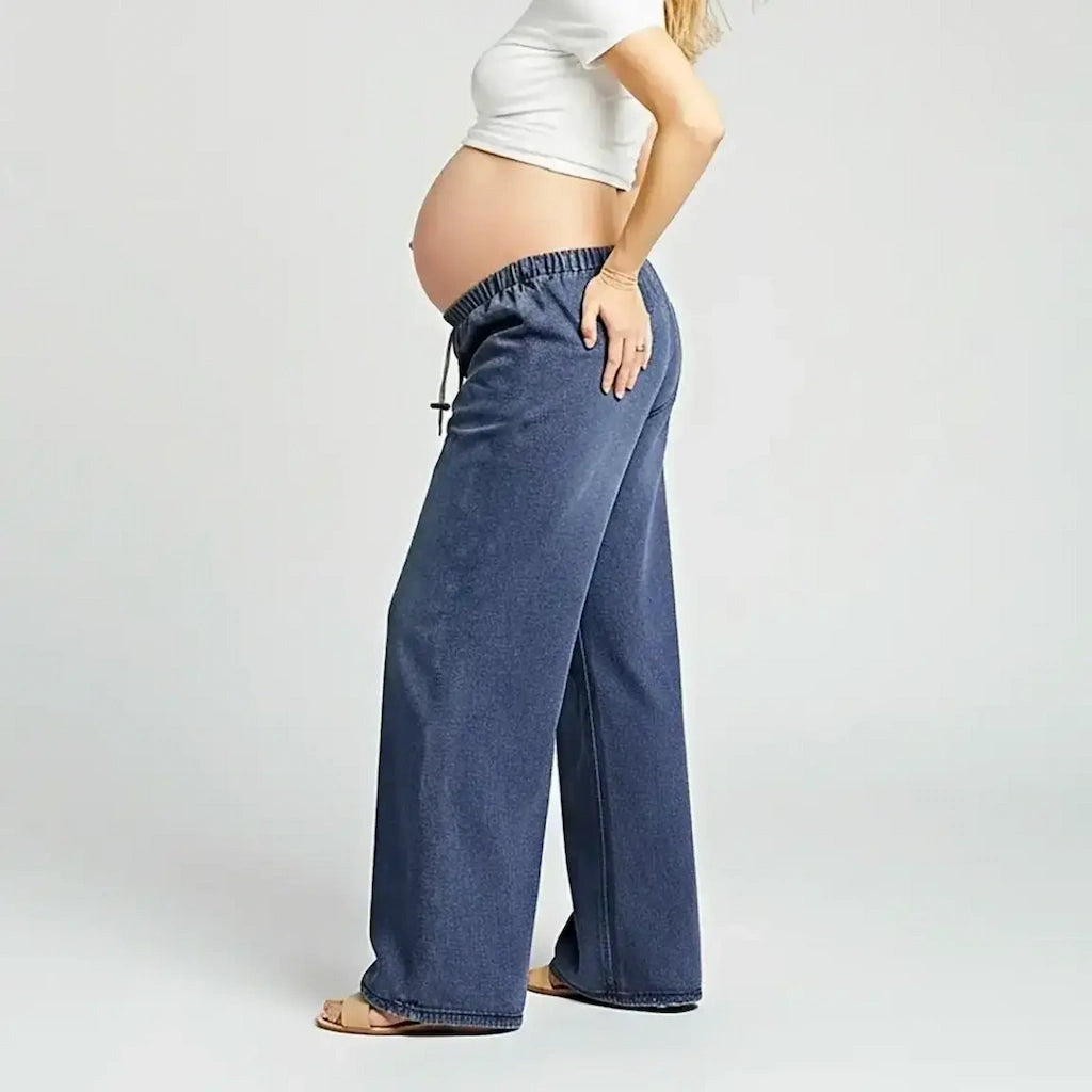 Slip into the Stretch Wide-Leg Maternity Jeans, crafted from ultra-soft maternity denim that moves, stretches, and supports you through every stage of pregnancy and beyond. The drawstring waistband offers gentle tummy support without pressure, while the wide-leg silhouette flatters your changing shape with easy elegance. From bump to baby, these postpartum jeans keep you feeling confident, comfortable, and effortlessly put-together — every single day.