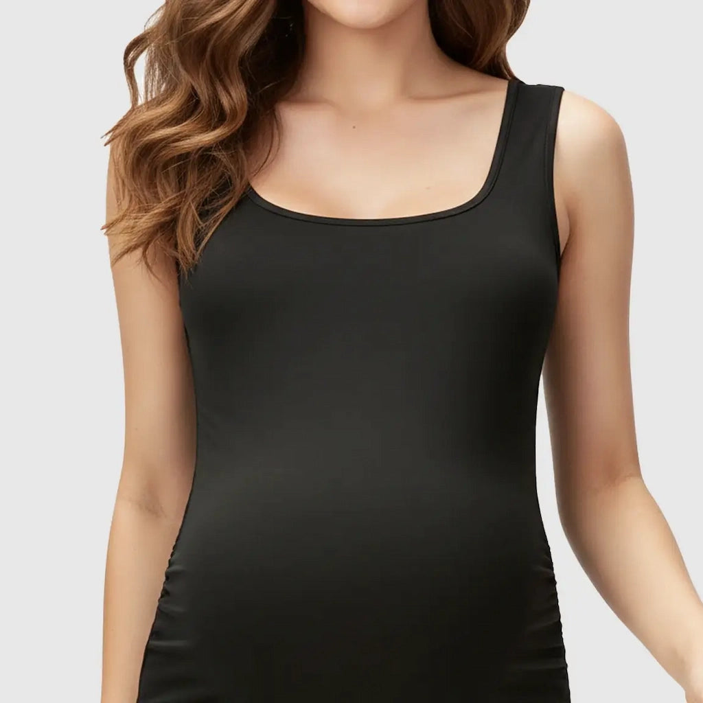 Meet the Wide-Strap Slim-Fit Bodycon Maternity Short Dress, designed to hug your curves with stretchy, breathable comfort that adapts through every trimester. The smooth, chiffon-like fabric drapes beautifully while the slim-fit silhouette shows off your bump in the most flattering way. With wide straps, a clean neckline, and an easy-to-style length, this is the dress you’ll reach for whether you're lounging, going out, or dressing up.