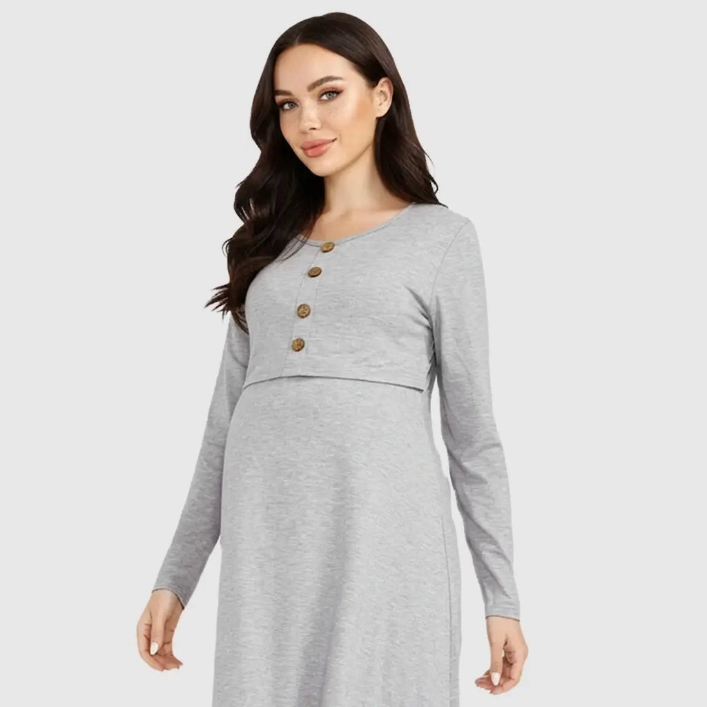 Button-Front Empire Waist Long Sleeve Nursing Dress