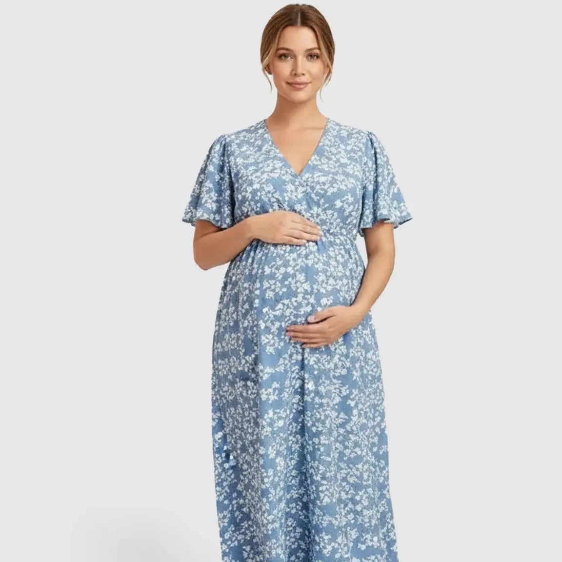 Cinched Waist Bohemian Maternity Maxi Dress