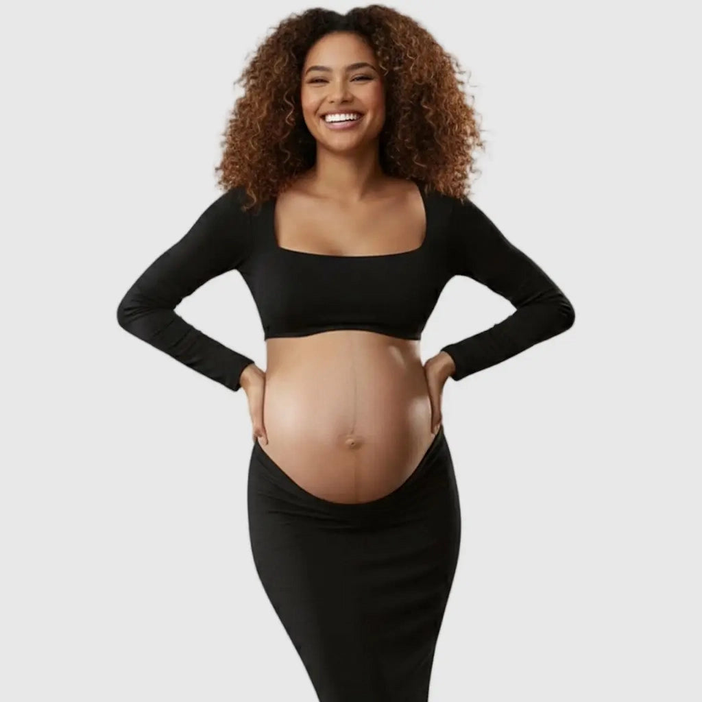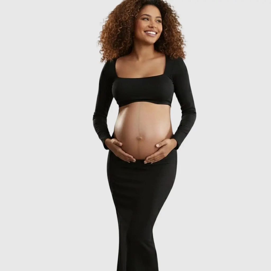 Feel stunning and supported through every stage of pregnancy in the Butt Lifting Bodycon Two-Piece Maternity Maxi Dress — your go-to blend of elegant, comfortable, and curve-hugging style. Crafted from buttery-soft, ultra-stretchy fabric, this fitted bodycon maternity dress smooths your silhouette and gently supports your bump with freedom to move. The floor-length and chic crop top create a sleek, sexy, formal-ready look that transitions seamlessly from maternity photoshoots to baby showers, evening events, or effortless daily glamour.