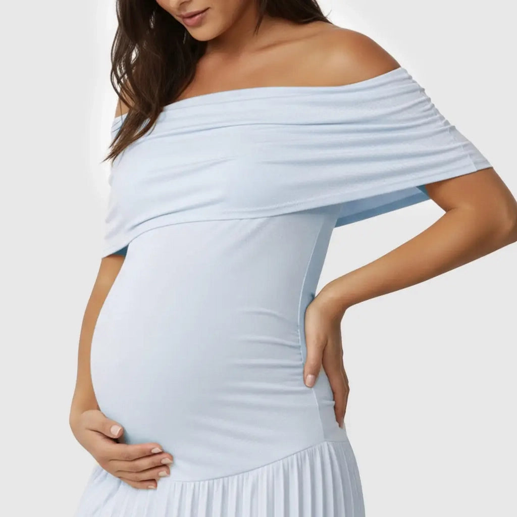 Meet the Curve-Hugging Pleated Maternity Maxi Dress, a timeless design that flatters your growing belly while flowing gracefully with every step. Made from soft, stretchy polyester, it smooths your silhouette without feeling tight and keeps you effortlessly comfortable through dinners, events, and everyday moments. Designed to grow with you, this is your go-to maternity dress for feeling beautiful and confident through every stage of pregnancy.