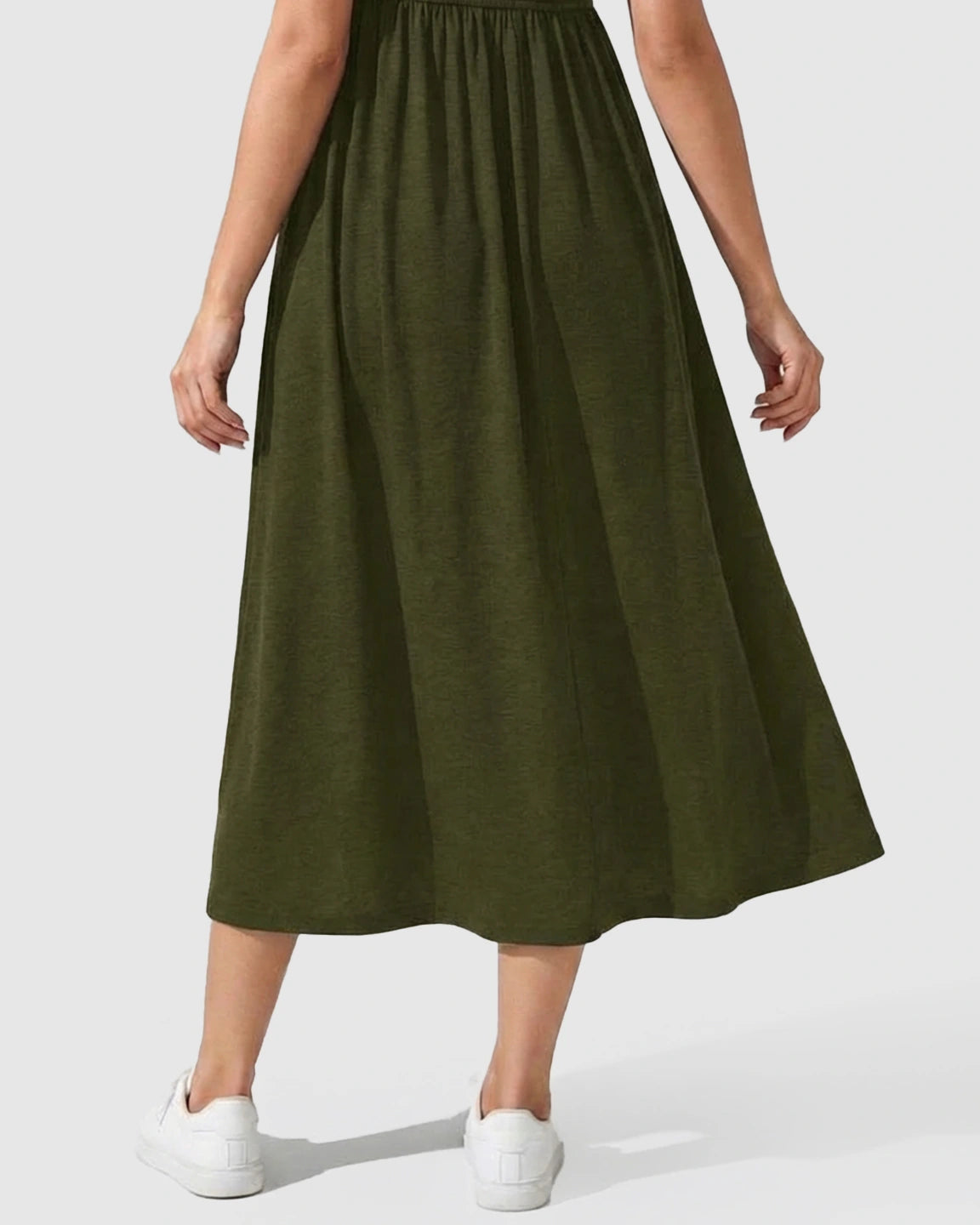 Drawstring Waist Sleeveless Maternity Midi Dress
