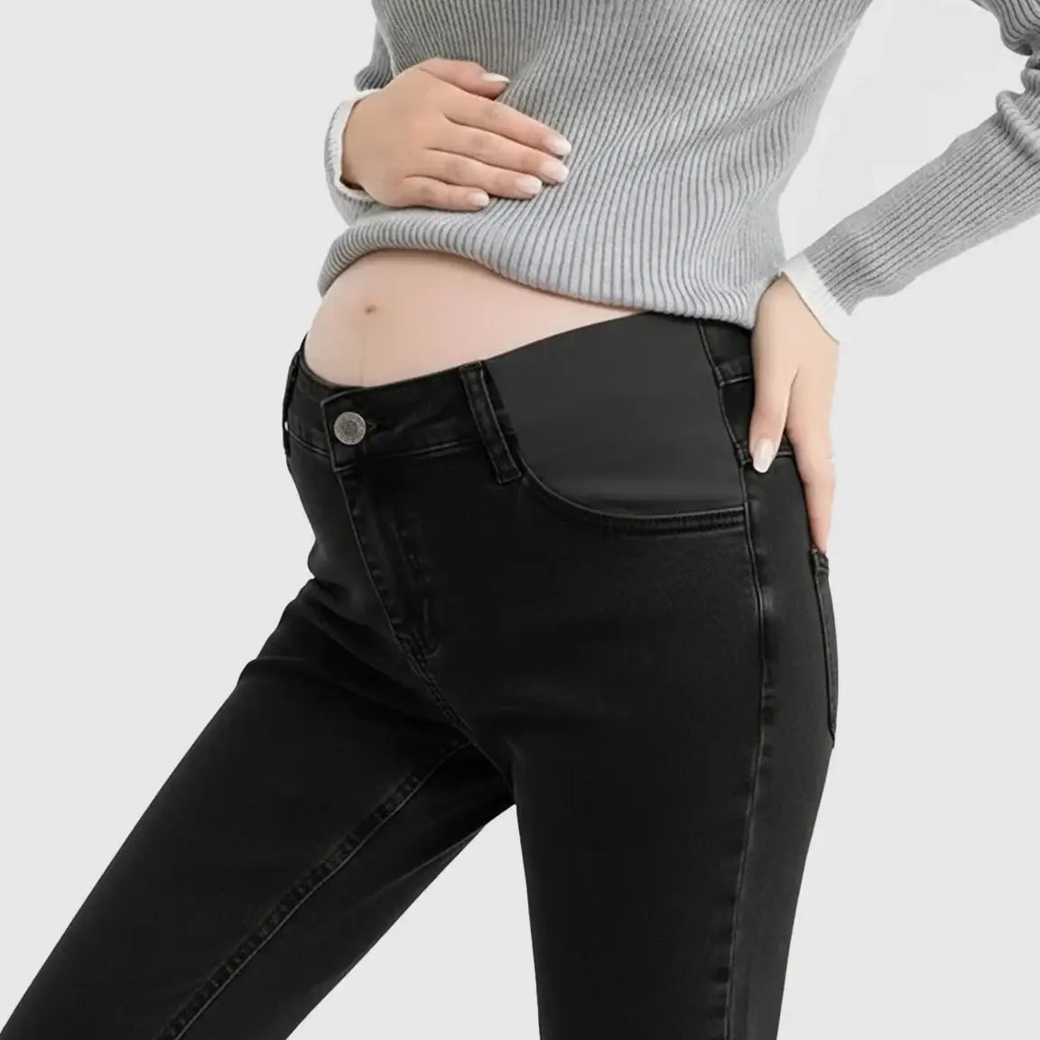 The Side Panel Straight-Leg Maternity Jeans blend classic denim style with bump-friendly comfort. Soft, stretchy maternity denim and a high-waist side panel gently support your growing belly without pressure.