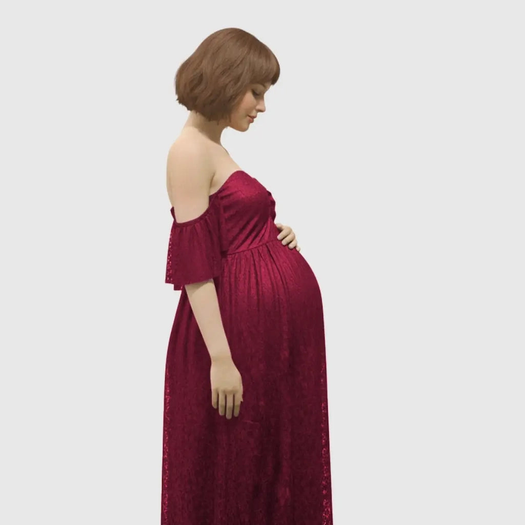 Elegant Lace Off-Shoulder Maternity Photoshoot Dress