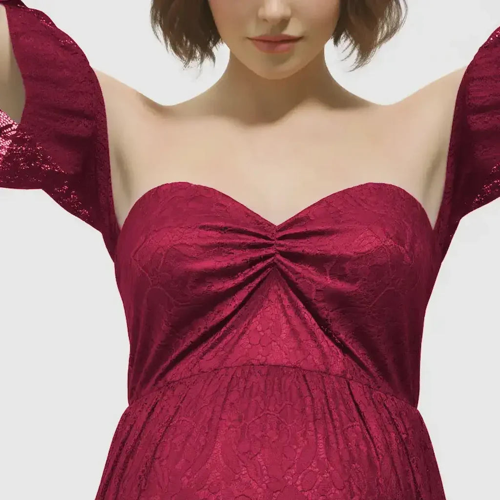 The Elegant Lace Off-Shoulder Maternity Photoshoot Dress is designed to celebrate your bump with timeless elegance. Crafted from soft, breathable lace, it drapes gracefully over your growing belly while keeping you comfortable through maternity photoshoots, baby showers, and special moments. With its romantic off-shoulder design and flowing lace train, this gown perfectly captures the radiant beauty of pregnancy—helping you look and feel as stunning as you truly are.