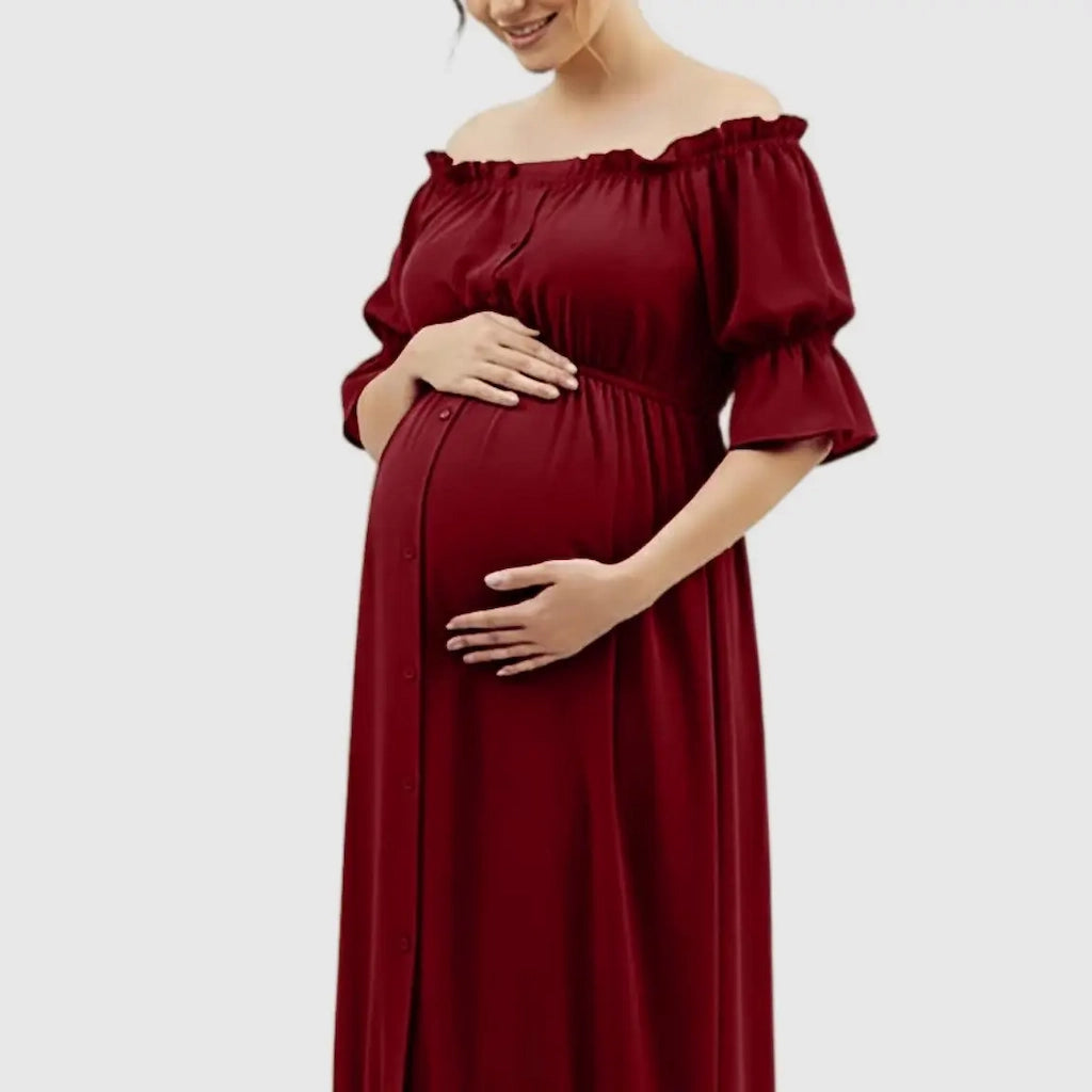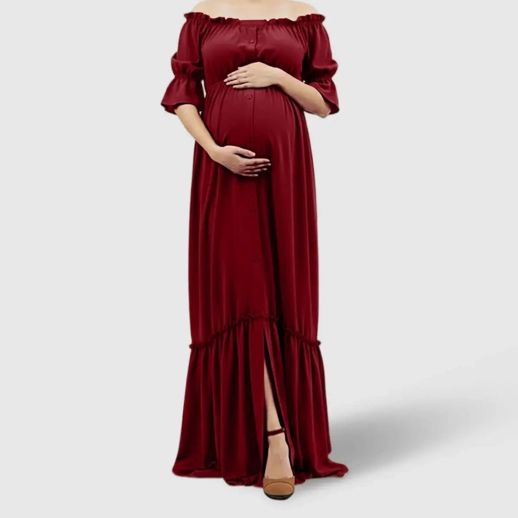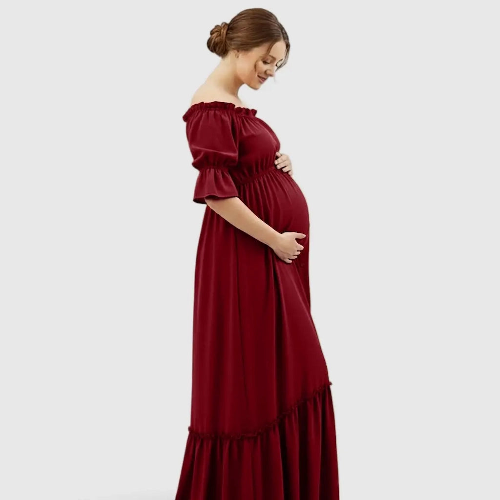Elegant Off-Shoulder Flared Maternity Long Dress