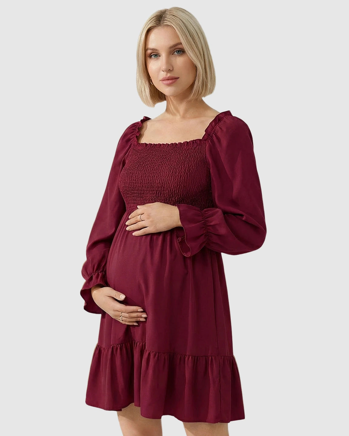 Flared Sleeve Smocked Babydoll Maternity Dress