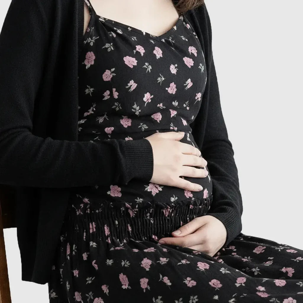 Designed with a gentle stretch waist and flowy silhouette that adapts beautifully through every stage of pregnancy.
