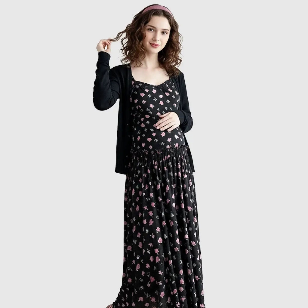 Where comfort meets beauty — this floral maternity maxi lets you look elegant and feel amazing through every stage.