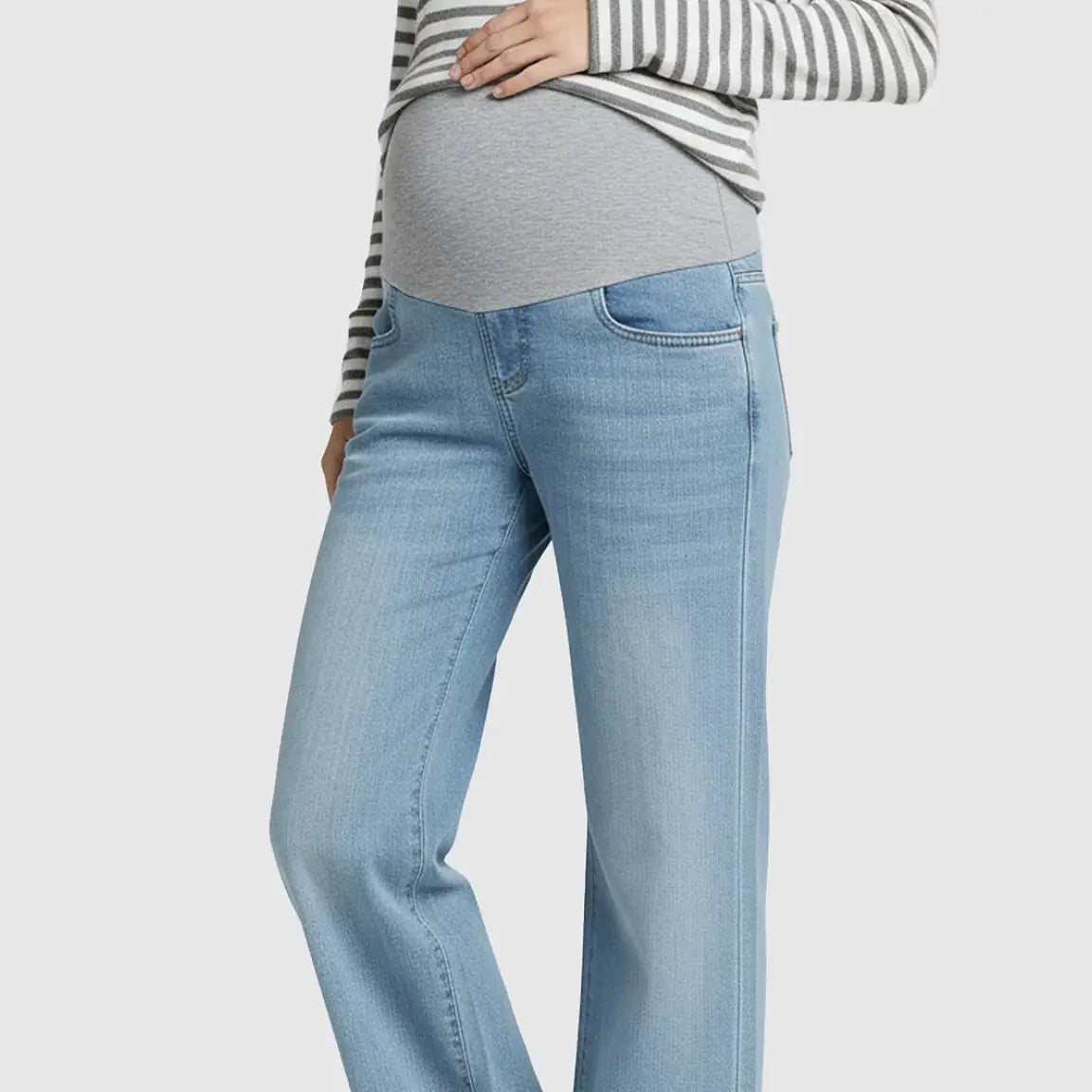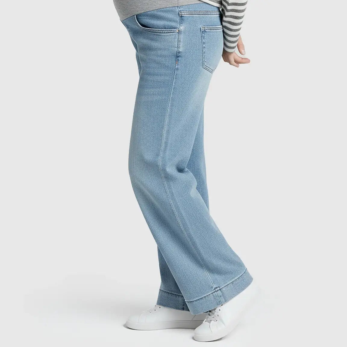 Step into comfort and style with our Folded Hem Wide Leg Maternity Jeans. Featuring a soft, supportive belly band, they offer all day comfort as your body changes.
