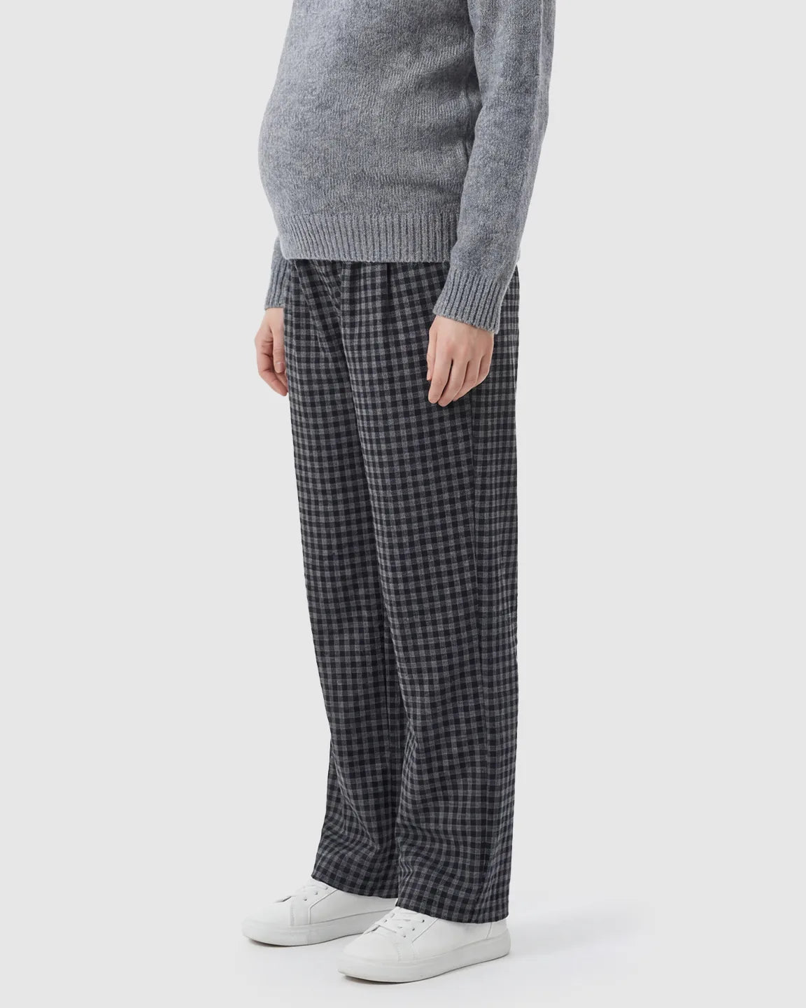 Gingham Plaid Relaxed-Fit Maternity Pants