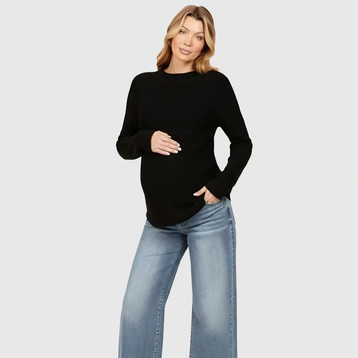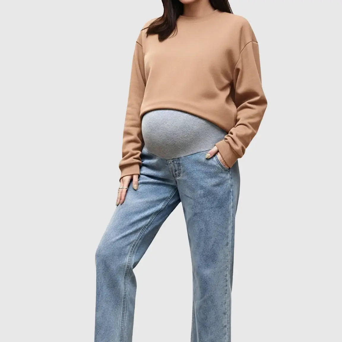 The High-Waist Denim Hug Maternity Jeans combine style, comfort, and belly support for expecting moms. Crafted from soft, breathable denim with a 75% cotton content, these jeans adapt to your growing bump while providing a relaxed fit. Featuring a trendy ripped design and wide-leg cut, they are perfect for casual outings or pairing with sweaters, T-shirts, or jackets from pre-pregnancy through postpartum.