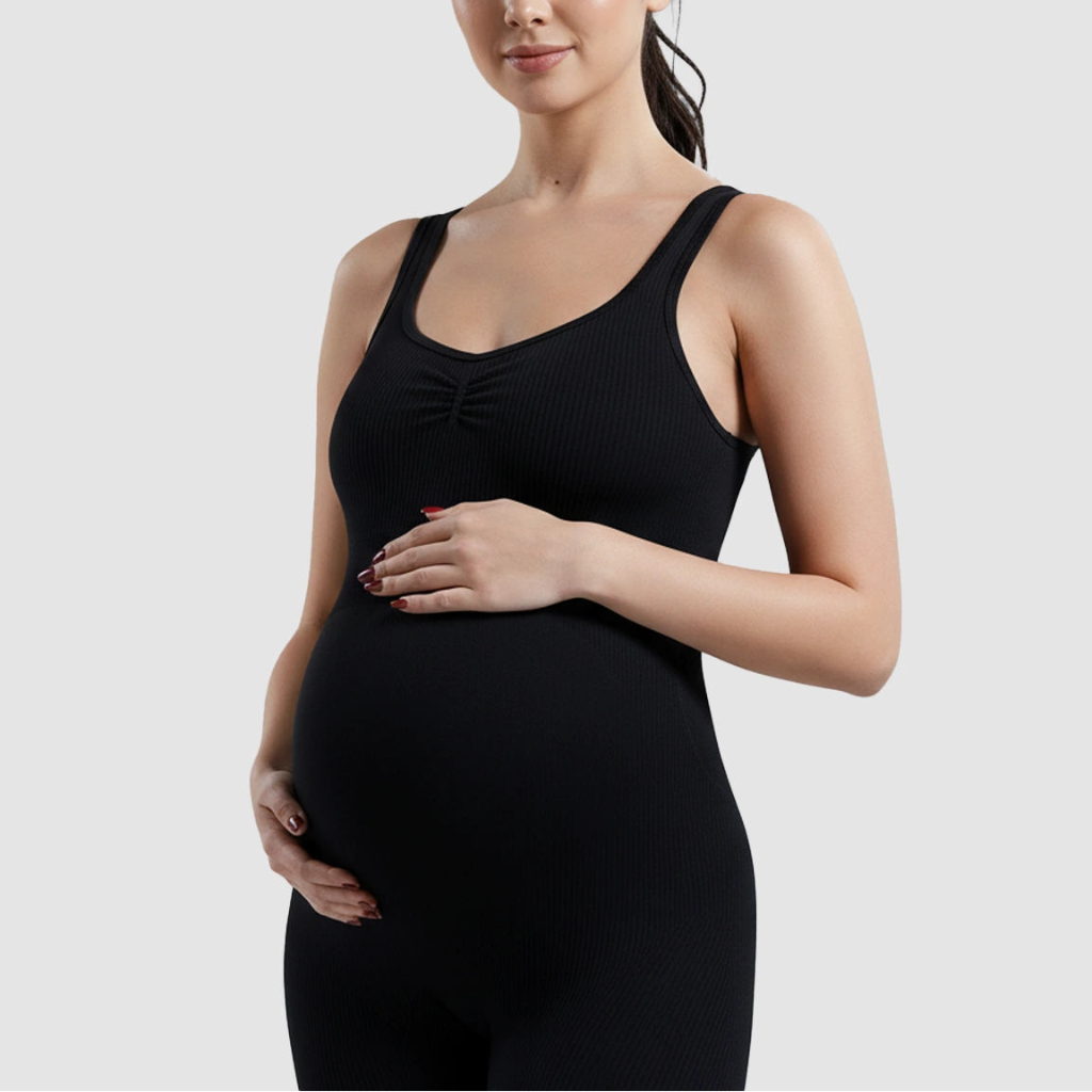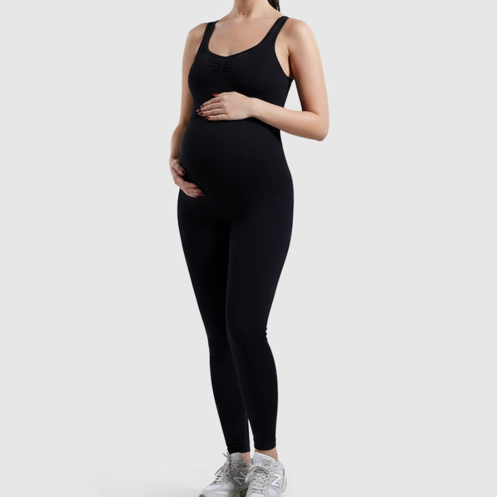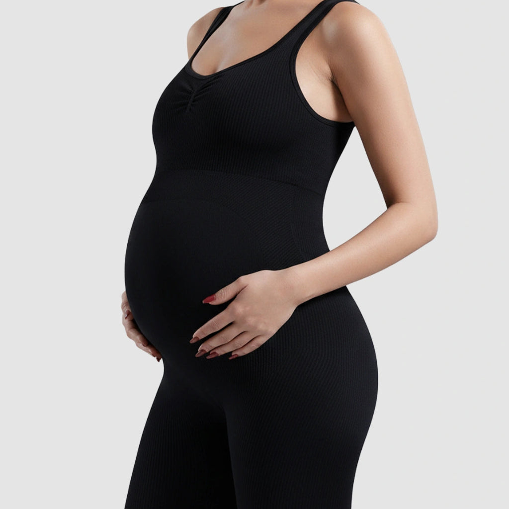 High-Waisted Stretch One-Piece Maternity Bodysuit