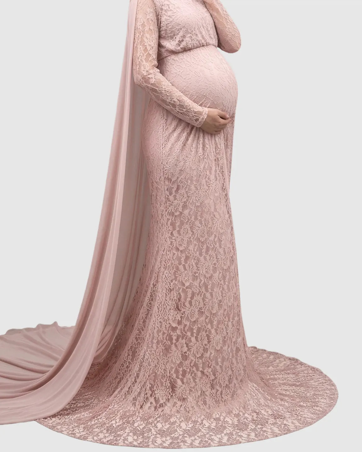 This Lace Cape Maxi Dress turns every maternity photoshoot into a high-end, European-style experience. Lightweight and breathable, it keeps you comfortable while creating dramatic, camera-ready visuals. Perfect for artistic, formal, or themed maternity photography.