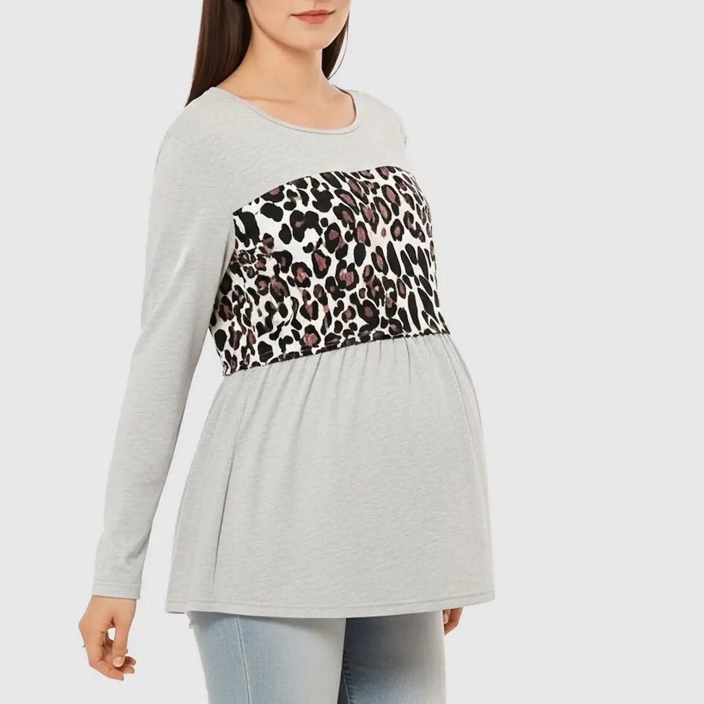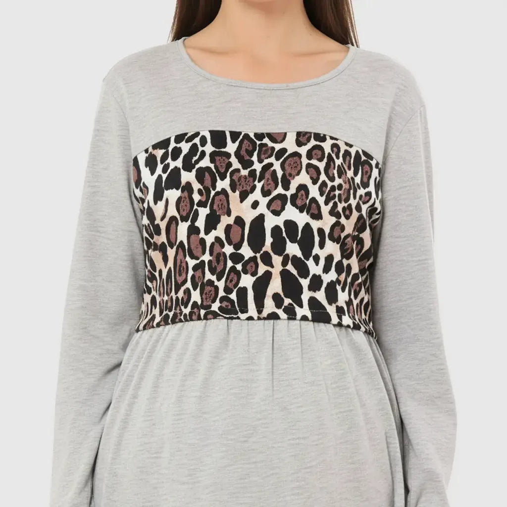 Leopard Panel Long Sleeve Maternity Nursing Top