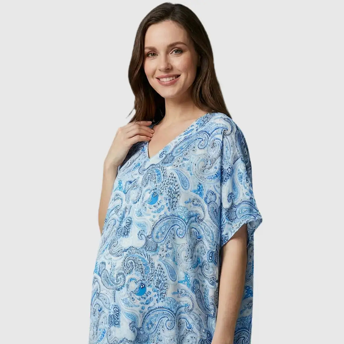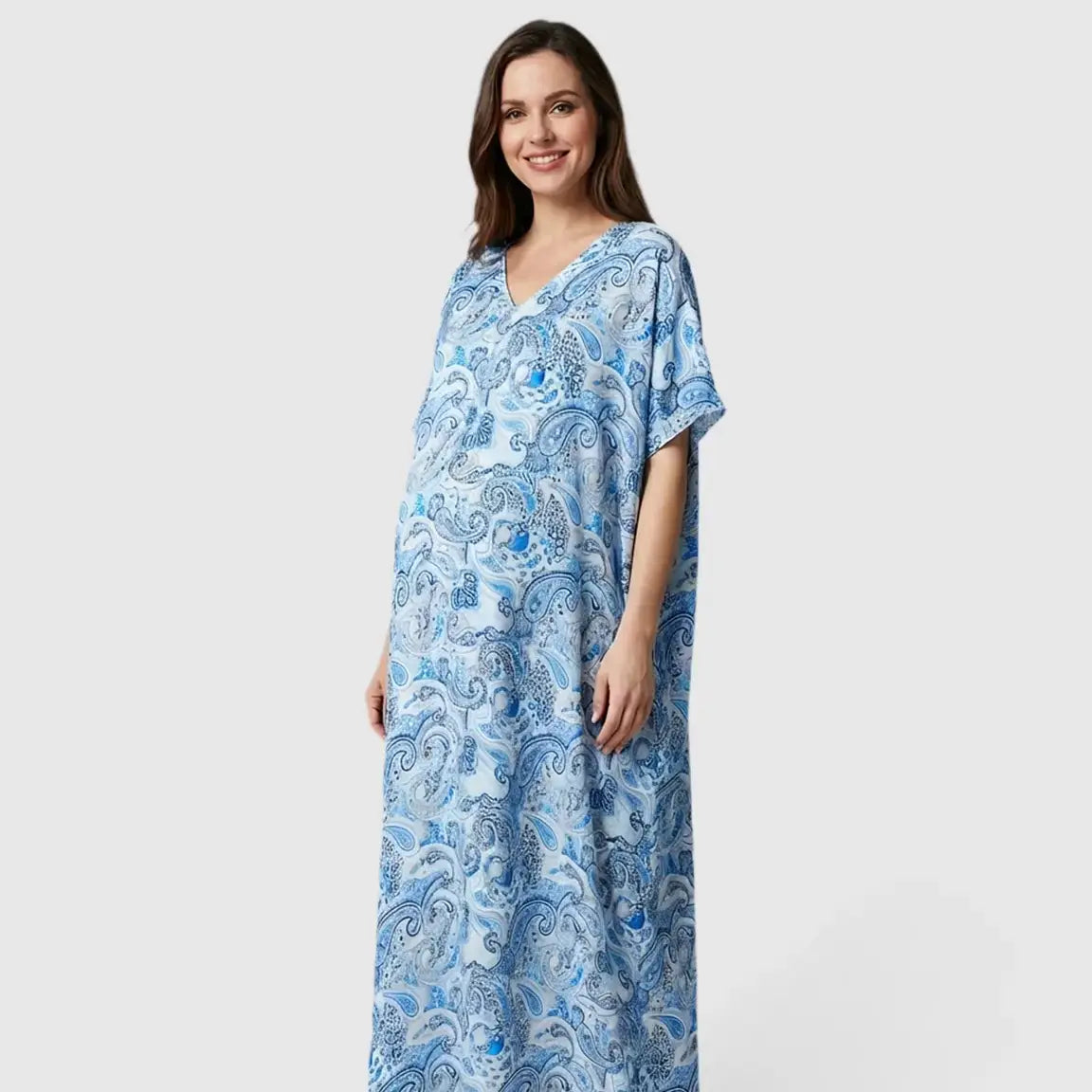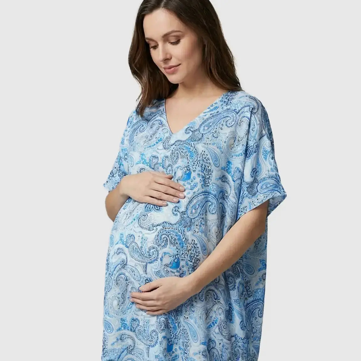 This lightweight cotton-linen maternity kaftan drapes softly over your changing body, giving you breathable comfort and an instantly put-together look. With its relaxed fit and artistic floral print, it’s the easy, breezy piece you're reach for during pregnancy, postpartum recovery, and every day before and after baby.
