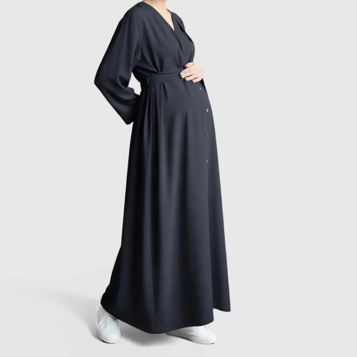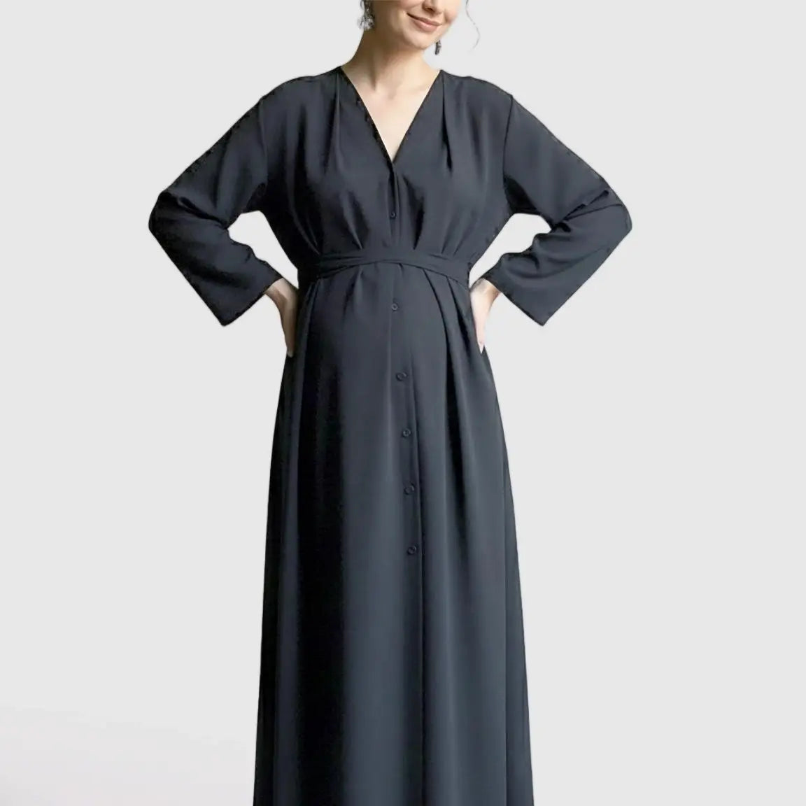Long Sleeve V-Neck Maternity Maxi Dress with Adjustable Waist