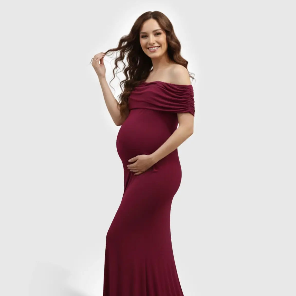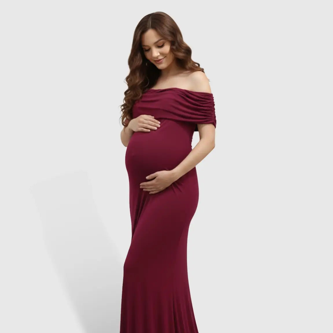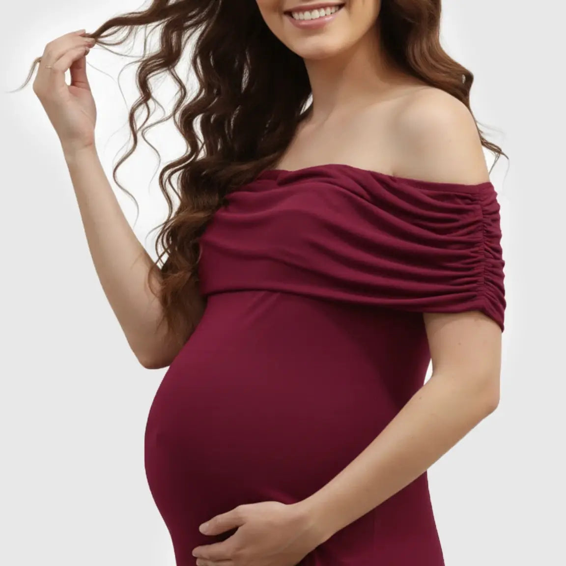 Show off your bump in style with our Off-Shoulder Mermaid Maternity Maxi Dress. Designed to flatter your silhouette, it features an elegant Bardot neckline, a curve-hugging bodice, and a breathable stretch cotton blend. The dramatic mermaid skirt adds effortless glamour, perfect for photoshoots, baby showers, or special occasions.