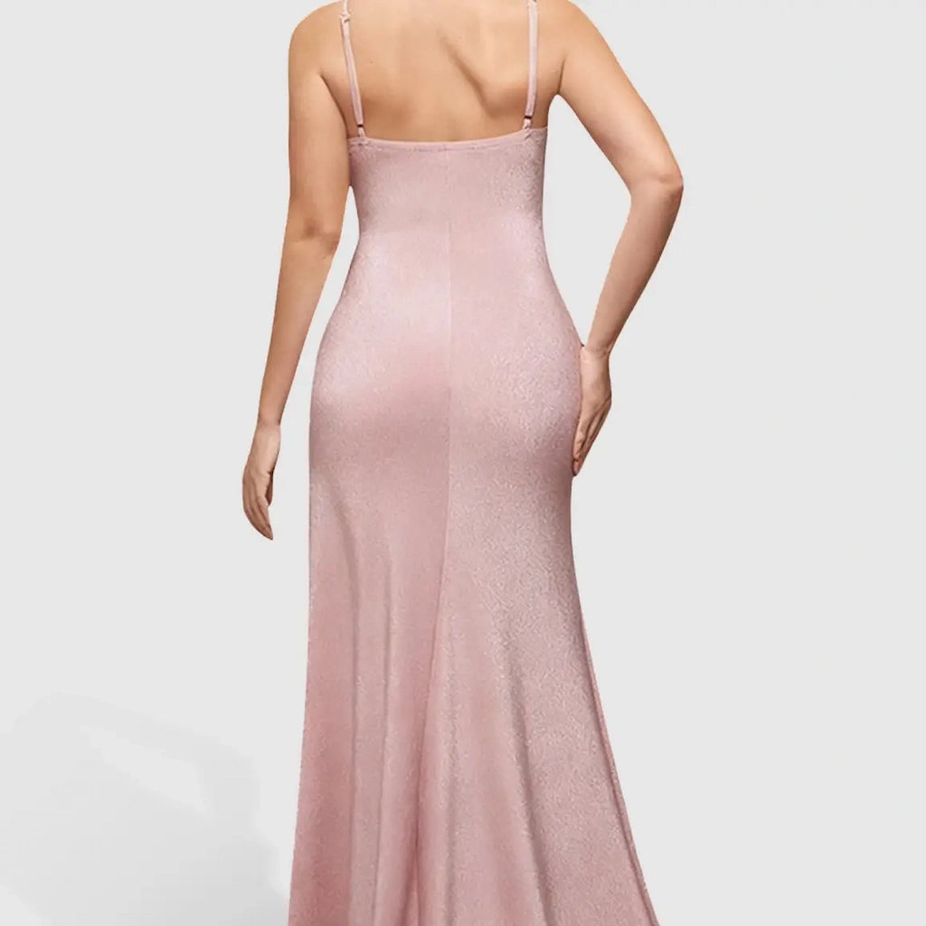 Slim-Fit Frosted-Texture Maternity Maxi Dress With High Side Slit