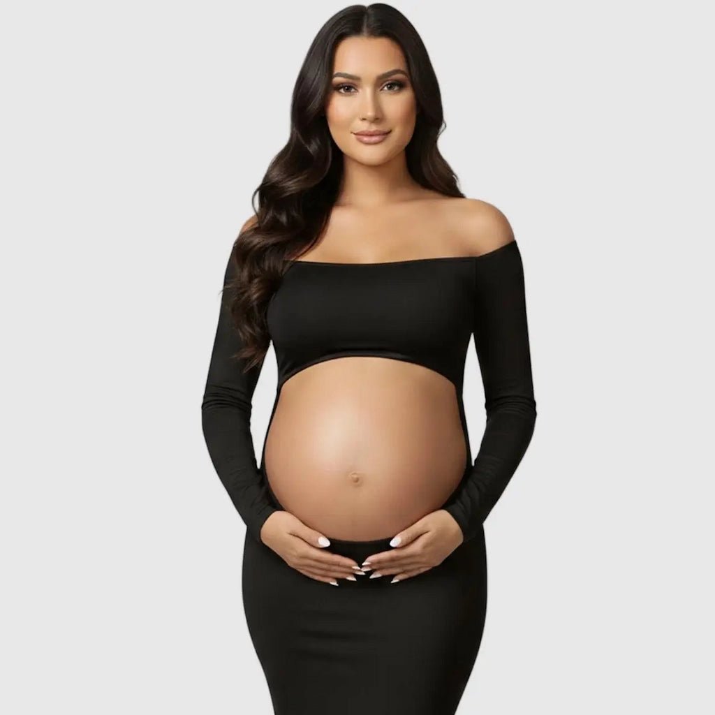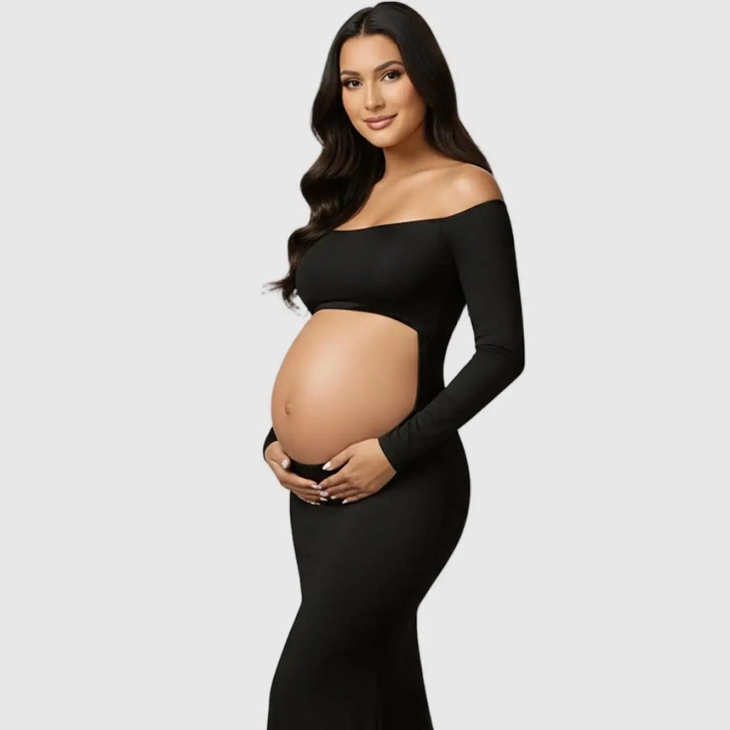 Off-Shoulder Bump Reveal Maternity Photoshoot Gown