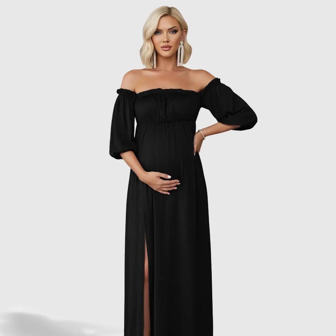 Meet the Off-Shoulder Elegant Maternity Maxi Dress, designed to make you glow with effortless confidence from your first trimester to your final bump photos. The stretchy, smooth fabric drapes beautifully over your curves while the off-shoulder neckline and high-slit skirt create a glamorous, maternity-friendly silhouette. Whether it's for a photoshoot, baby shower, or a special night out, this dress brings elegance, comfort, and freedom of movement together in one stunning piece.