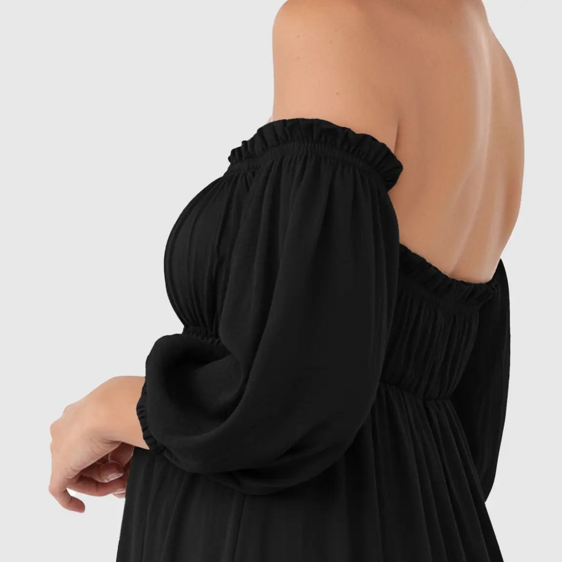 The romantic neckline brings instant glam, perfect for baby showers, photoshoots, and special outings.
