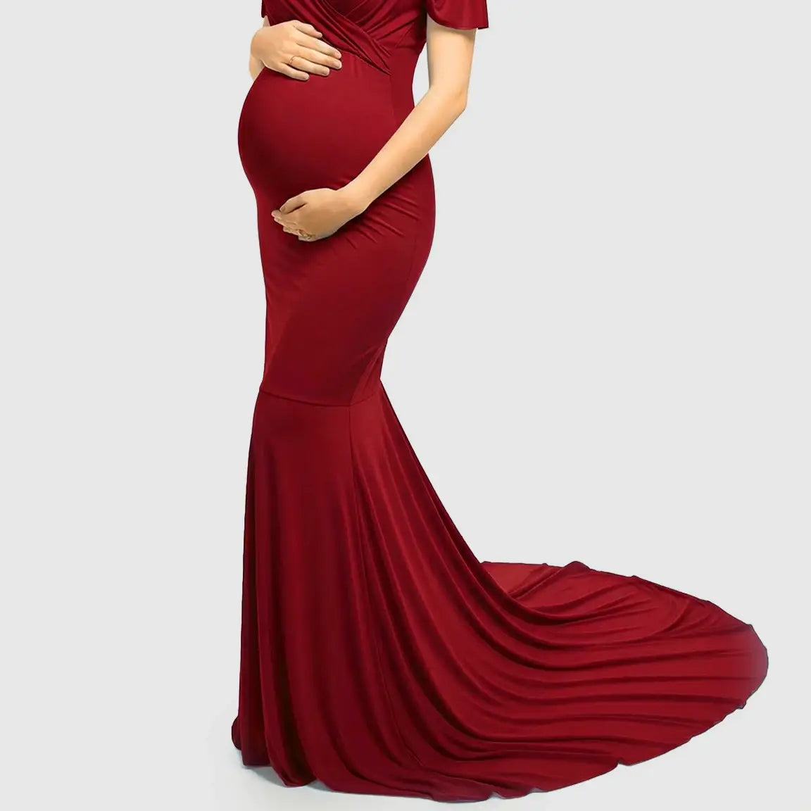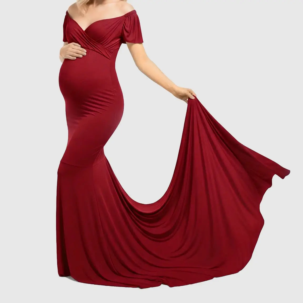 Off-Shoulder Fitted Mermaid Style Maternity Photoshoot Gown