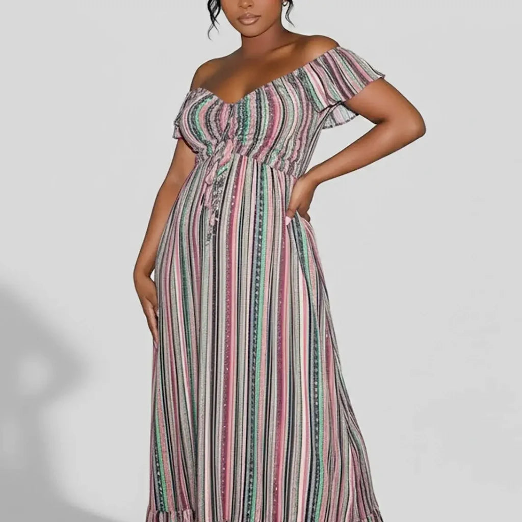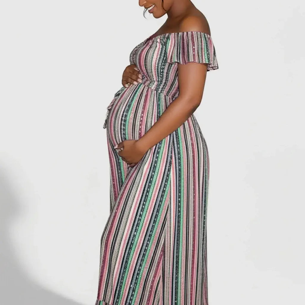 Off-Shoulder Elegant Floor-Length Maternity Maxi Dress