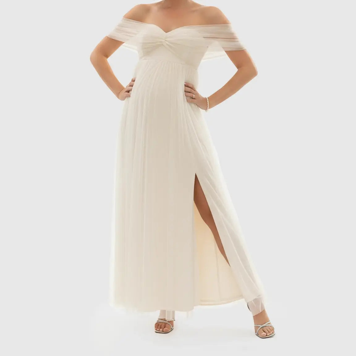 Off-Shoulder Flowing Maternity Photoshoot Gown