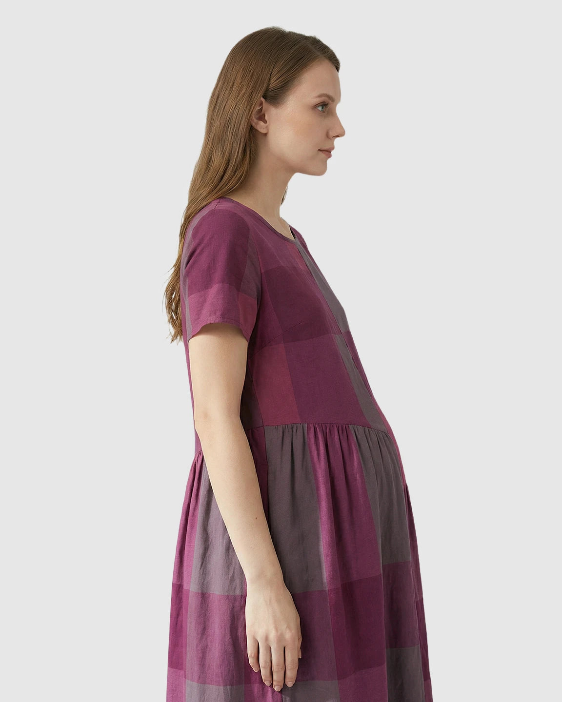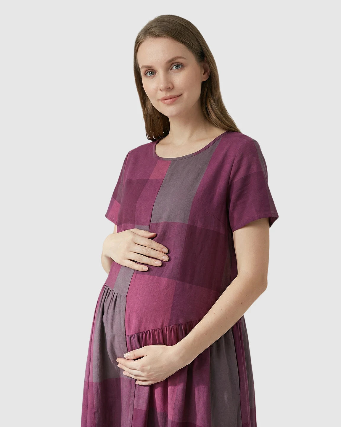 Plaid Color Block Loose Fit Maternity Maxi Dress