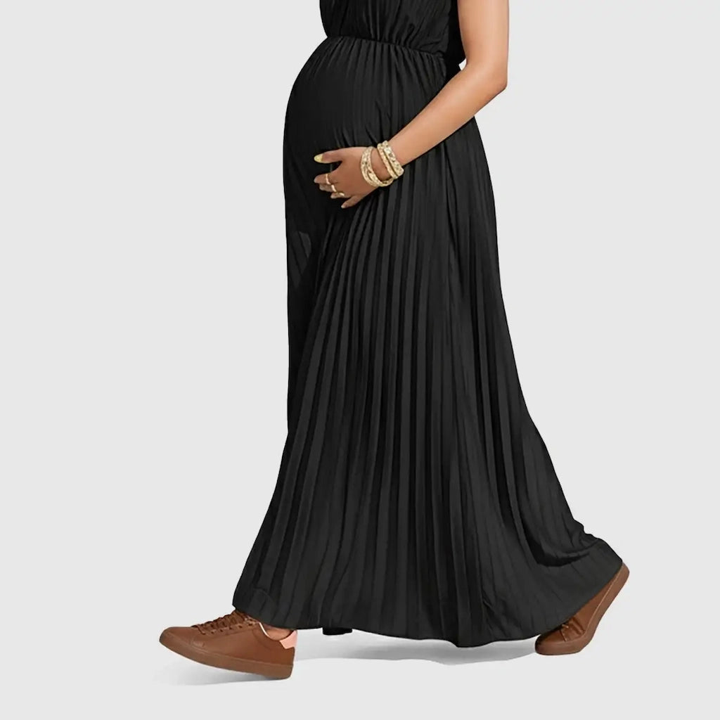The Elegant Faux Silk Maternity Maxi Dress is your go-to piece for every stage of pregnancy. Crafted from buttery-smooth faux silk that drapes beautifully over your growing bump, it feels luxuriously soft yet effortlessly light. The pleated skirt flows gracefully with every step, while the high-waist design flatters your shape and creates a sleek, elongating silhouette that moves as you do. This gown brings effortless elegance and comfort—perfect for baby showers, date nights, or any special moment.