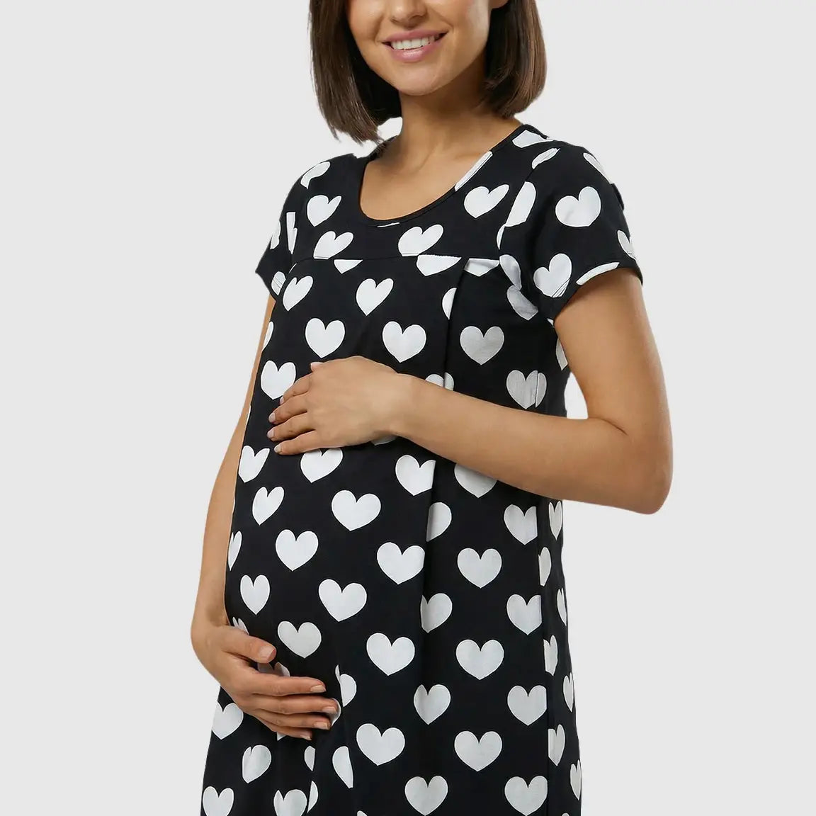 Pure Cotton Heart-Pattern Maternity Nursing Dress