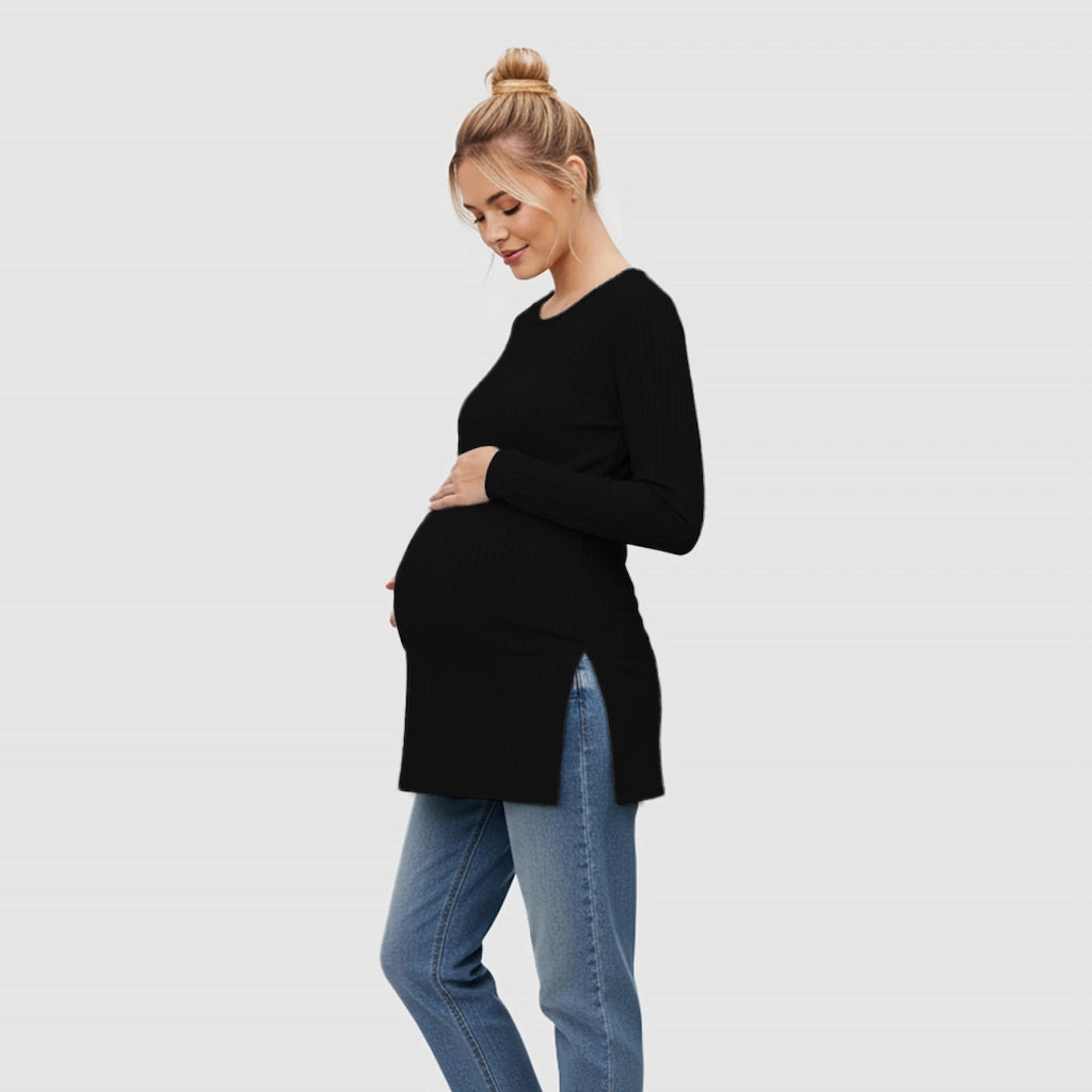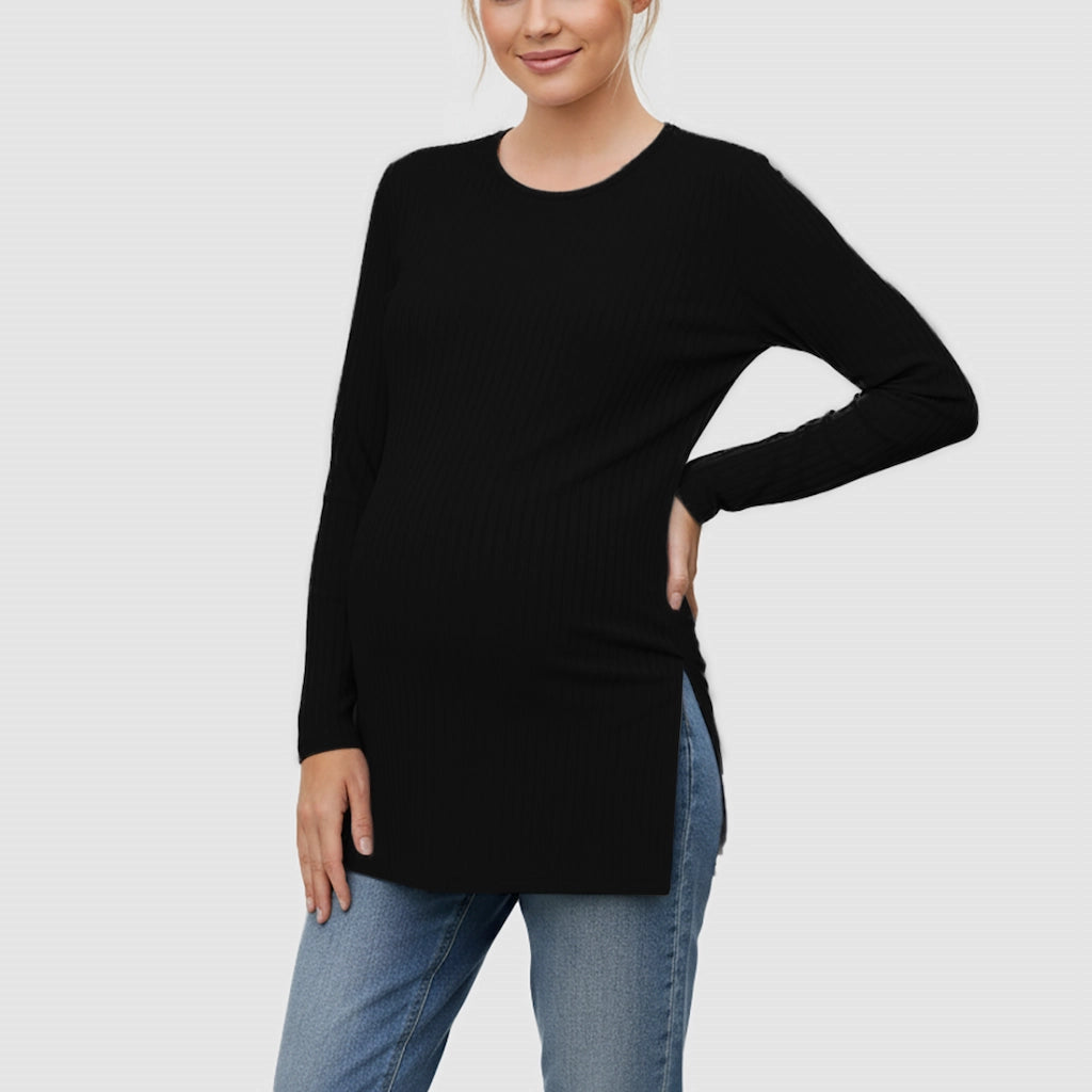 Ribbed Knit Long Sleeve Maternity Top with Side Slits