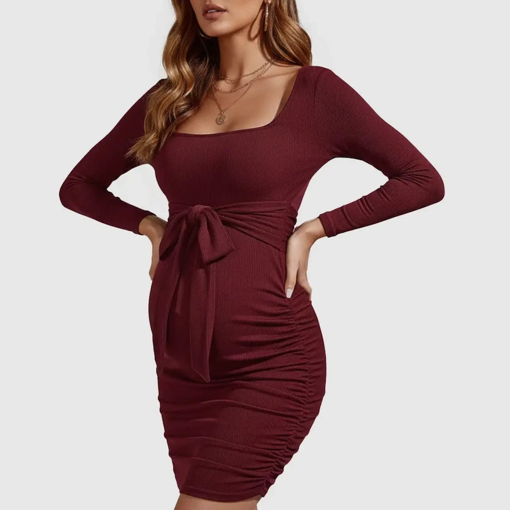 Ribbed Knit Tie Waist Bodycon Maternity Short Dress