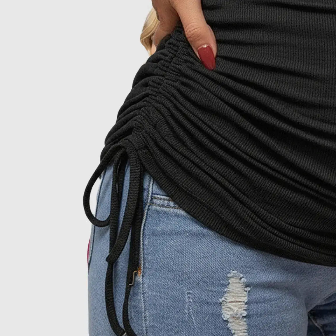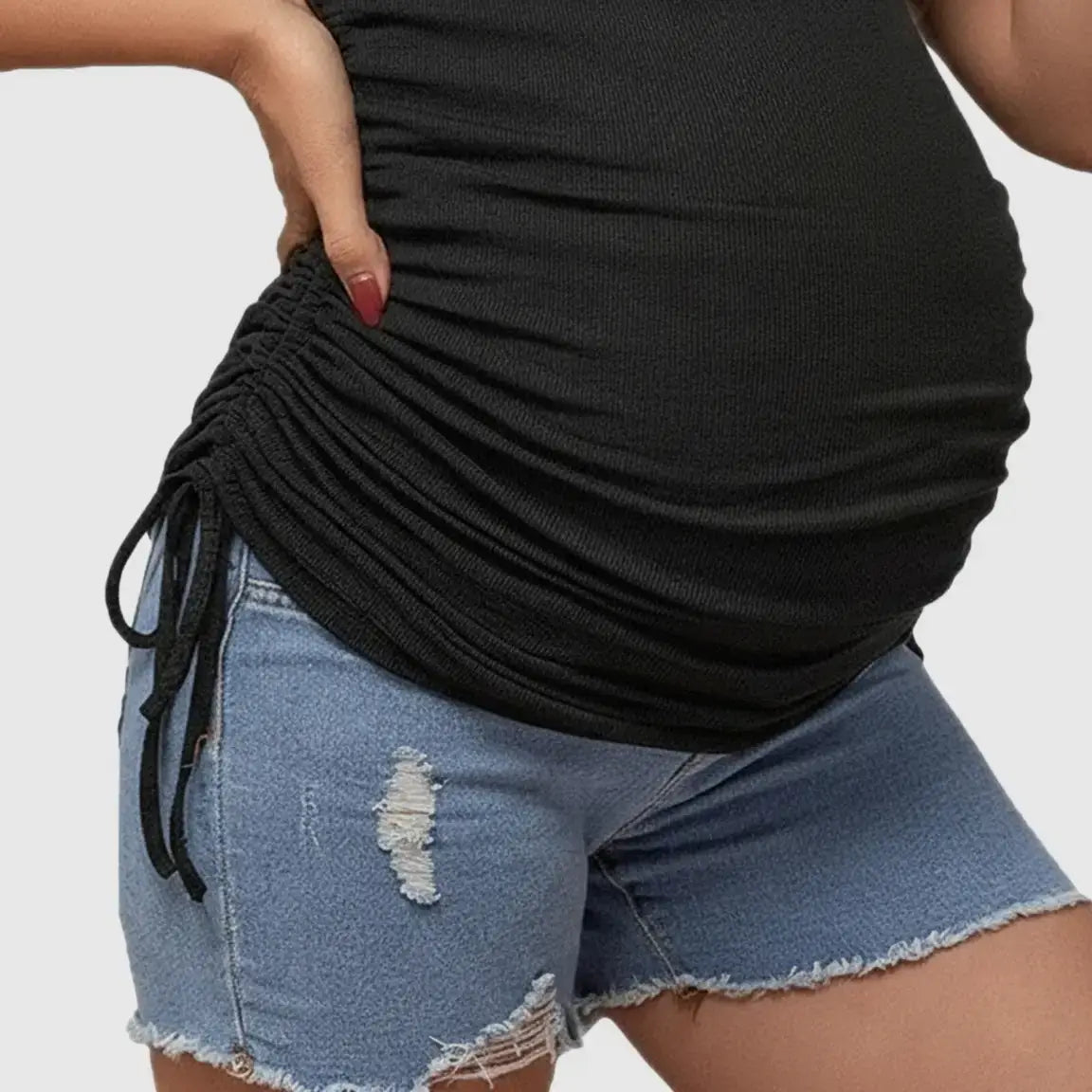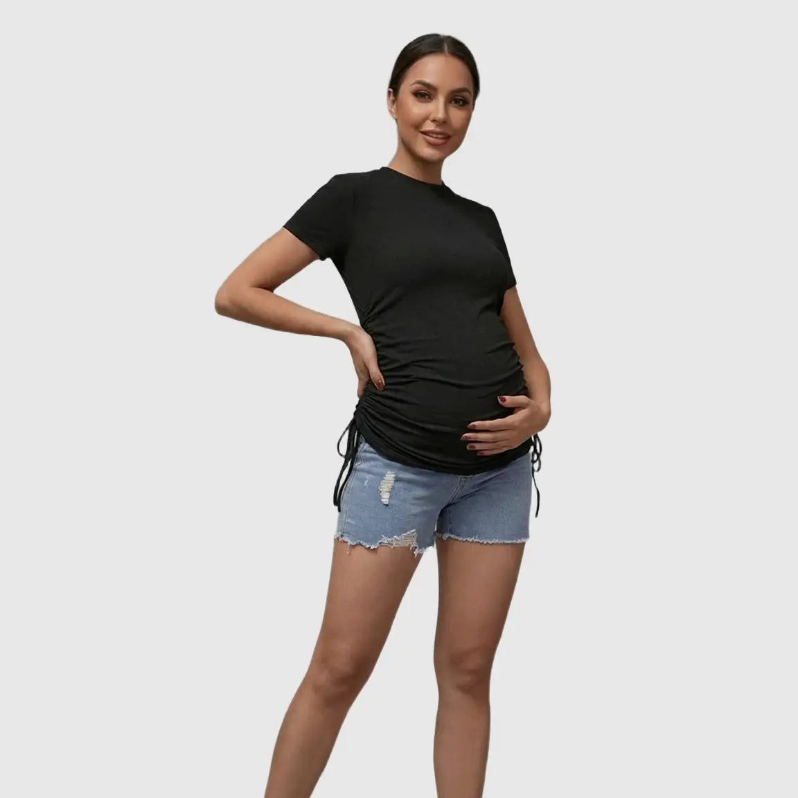 Ruched Waist Casual Maternity Top With Denim Shorts