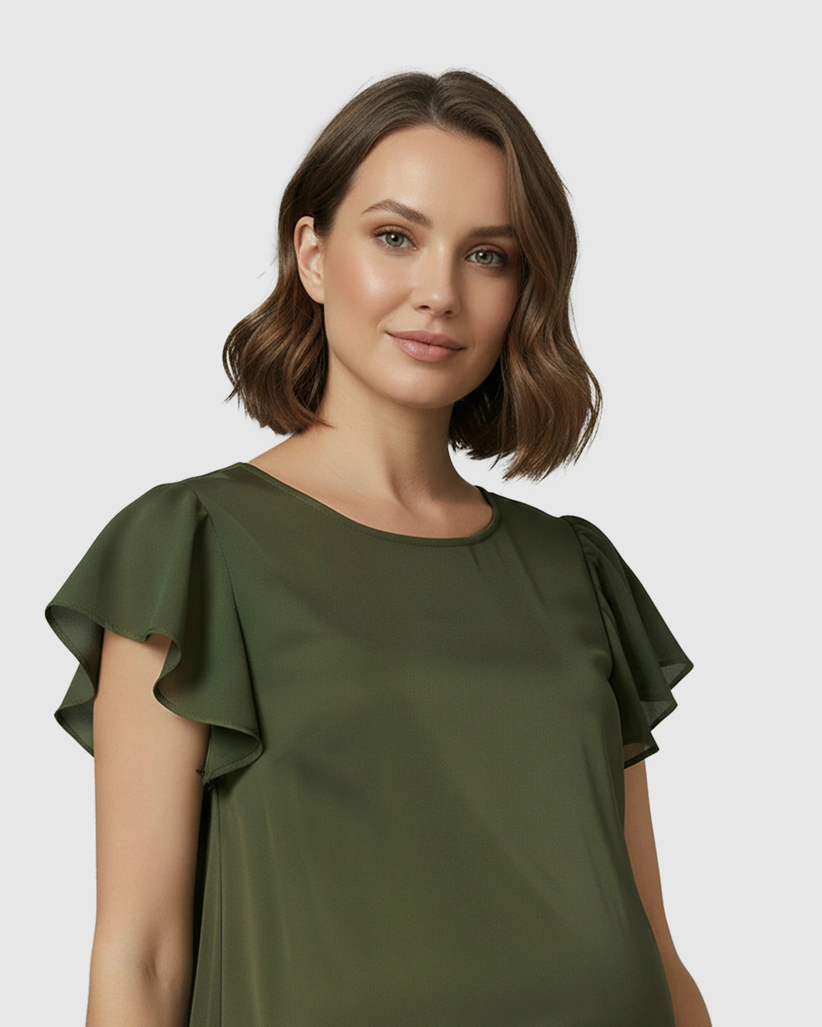 A classic round neck and soft ruffle sleeves that bring effortless charm to every stage of pregnancy.