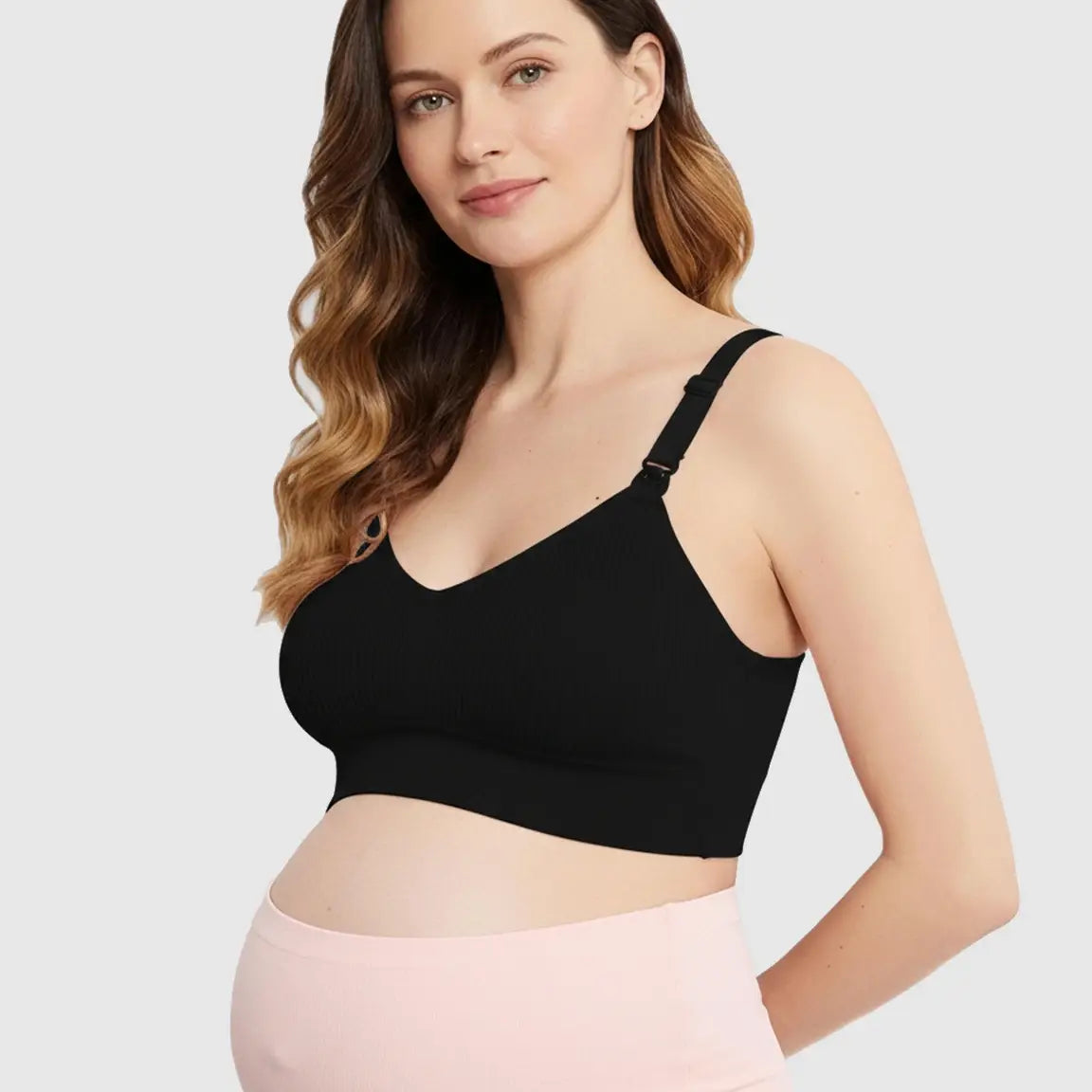 Meet the Seamless Support Maternity & Nursing Bra — your everyday essential for comfortable, seamless, and supportive wear through every stage of motherhood. Thoughtfully designed for maternity, nursing, and postpartum, it features a soft, breathable nylon-spandex fabric that moves with your body’s natural changes while offering gentle lift and reliable support. With its easy breastfeeding access, smooth feel, and all-day comfort, it keeps you secure, dry, and effortlessly at ease from morning snuggles to midnight feeds.