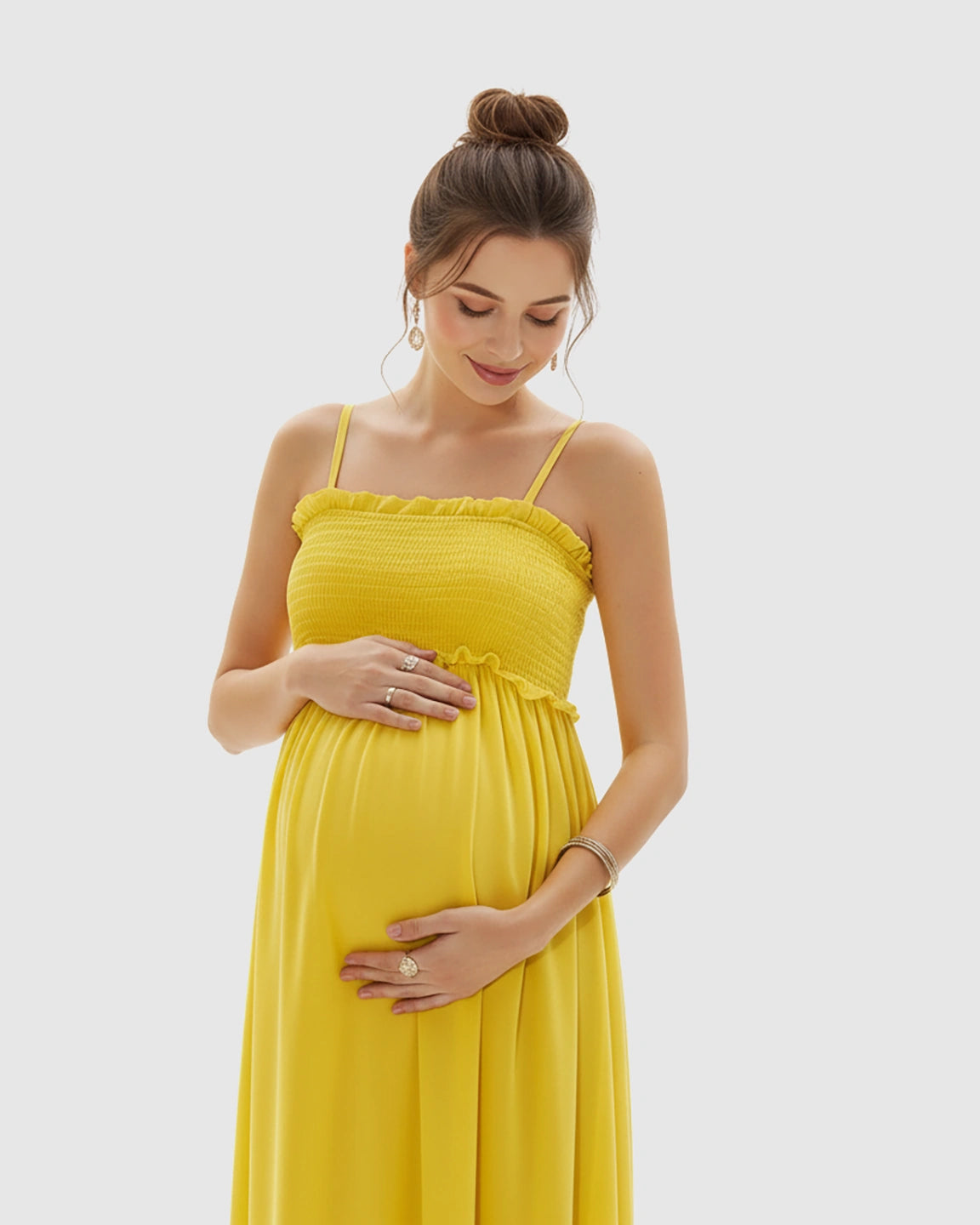 Shirred Spaghetti A-Line Maternity Maxi Dress
