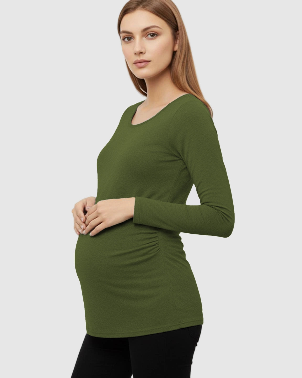 Side-Ruched Slim Fit Long Sleeve Maternity Top
