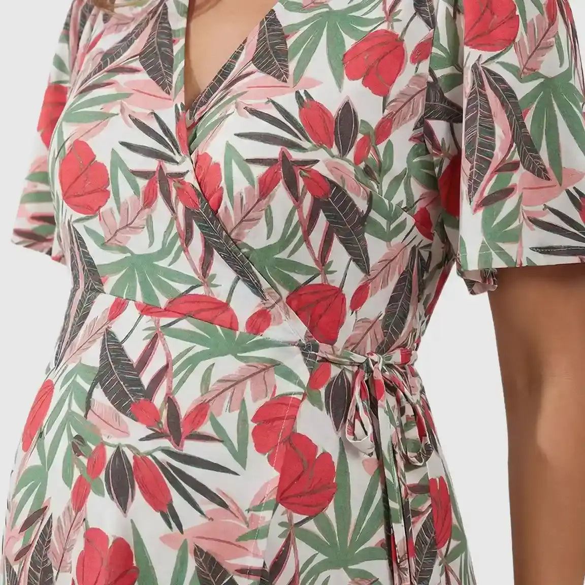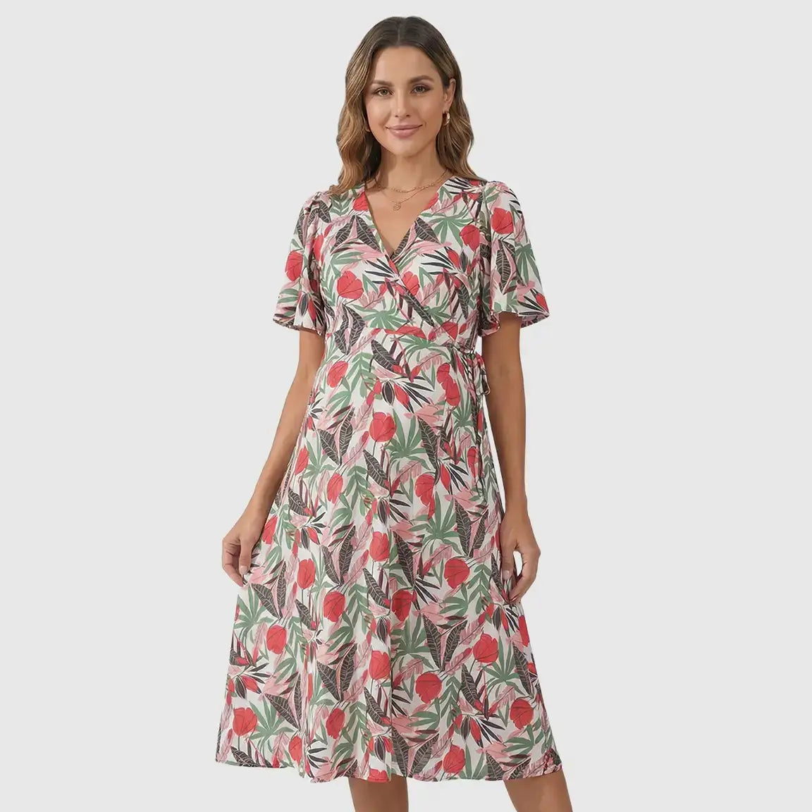 Side Tie Wrap Tropical Floral Maternity Midi Dress